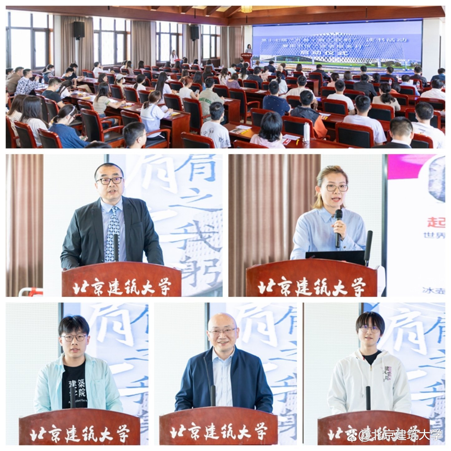 5月9日,北京建筑大学第十七届“开卷·肩之我躬”读书活动开幕式暨“读者服务月”启动仪式在大兴校区成功举办。北京建筑大学党委常委、副校长陈红兵,党委常委、文化发展研究院/人文学院党总支书记孙冬梅,中国女子冰壶队前队长、世界冠军王冰玉,中国建筑图书馆馆长朱辉,书香中国·北京阅读季金牌阅读推广人岂航,中国建筑图书馆副馆长王丽,书香中国·北京阅读季·书香校园项目执行负责人王燕华,党委宣传部副部长(主持工作)、网络信息管理服务中心主任魏楚元,学生工作部(处)(研究生工作部、武装部)部(处)长、团委书记卫巍,教务处处长、未来建筑技术学院执行院长韩淼,工会常务副主席刘艳华,理学院党委书记毛发虎,研究生院副院长吕晓勇,科发院重点平台建设管理处副处长石炀,图书馆馆长高岩,图书馆直属党支部书记兼副馆长黄琇,以及教师代表、图书馆教职工、学生馆员、读书活动获奖学生代表等百余人参加了开幕式。开幕式由黄琇主持。