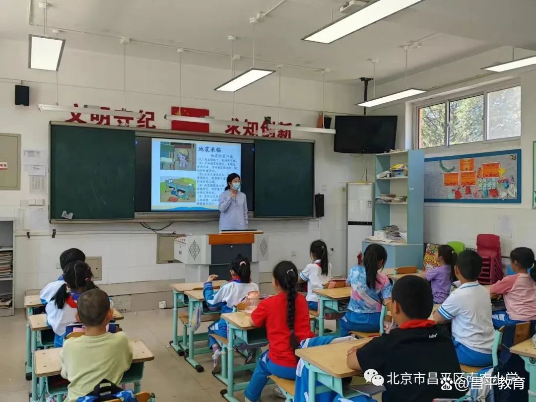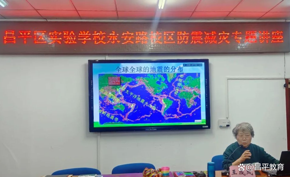 昌平区实验学校永安路校区开展“防范灾害风险 护航高质量发展”主题活动。特邀“中国老科协科普团”“中国科普作家演讲团”“中国科技馆科普团”科普演讲专家,高级工程师王成凤老师进行防震减灾专题讲座。王老师从“我们如何面对地震”“地球上为什么会发生地震”“地震预报和地震预警有什么不同”“地震时的应急避险及自救互救”几方面与学生讲解、互动,提高学生应变、自救能力。