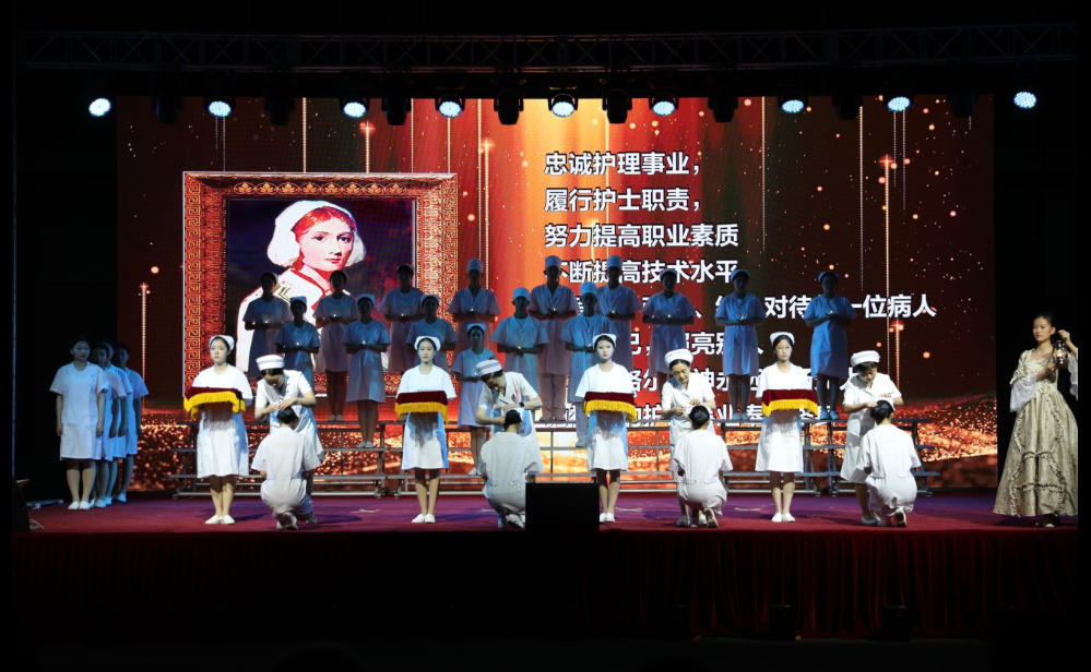 随后开展的文艺晚会分为《忆往昔,峥嵘岁月》《看今朝,百舸争流》《展未来,任重道远》三个篇章,舞蹈《人间烟火》、歌曲《第一天》、诗朗诵《天使从这里启程》等11个精彩节目轮番上演。精彩又饱含深意的表演充分展现了护理师生积极向上、蓬勃奋进、乐观进取、接续奋斗的精神风貌,赢得台下阵阵掌声。