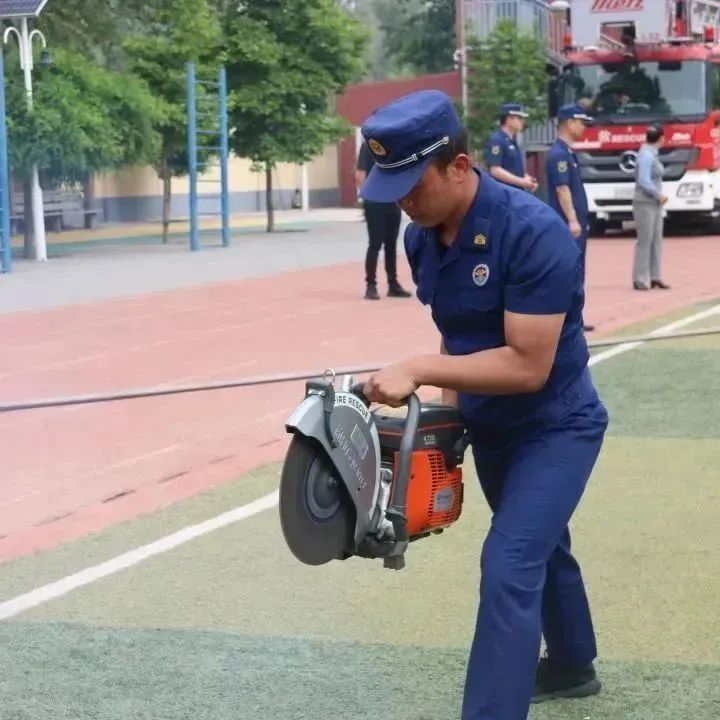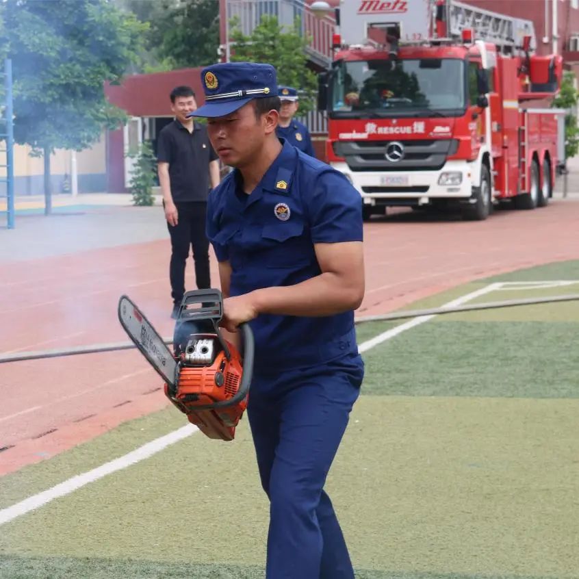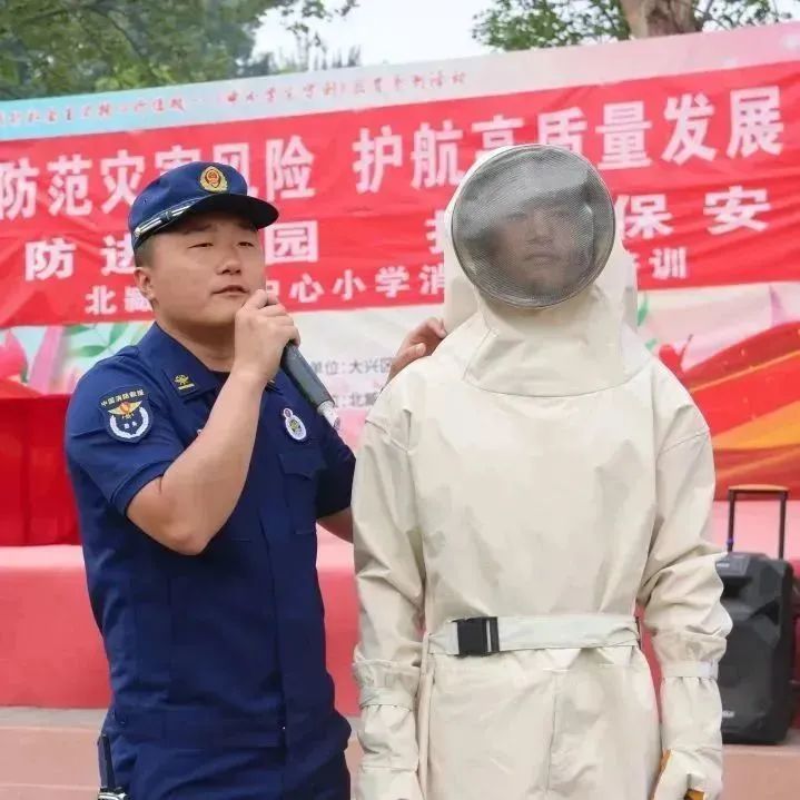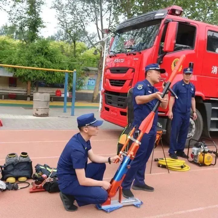 指战员们还为大家带来了一堂生动的消防救援实践课,现场演示并讲解了消防水袋、灭火器等消防器材的使用办法及相关原理,指导同学们现场试穿消防服,并正确使用应急照明灯等消防设施。