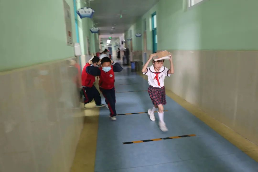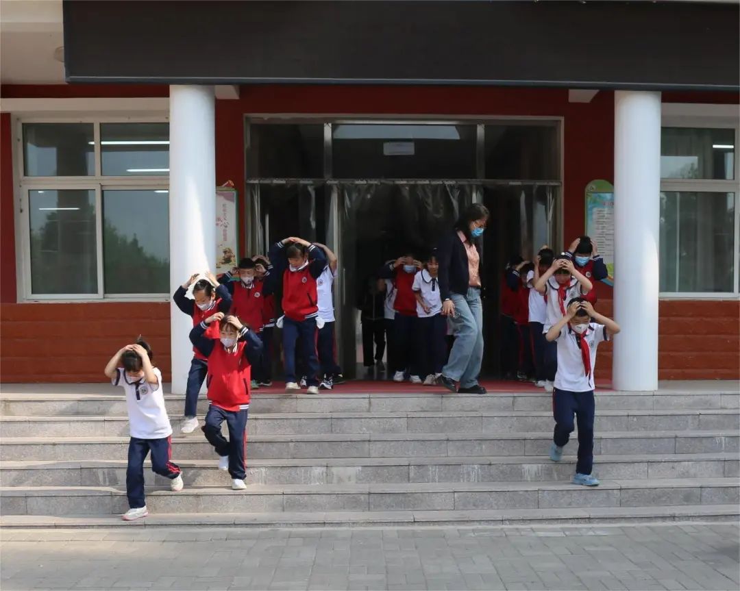 5月12日,随着第一次演练信号响起,逃生疏散演练正式开始,当节任课教师组织学生按照疏散路线有序下楼,检查、保安等人员在楼道、楼门等演练过程中容易发生安全事故的地段进行疏导,全体师生迅速有序地按指定路线撤离到空旷操场。