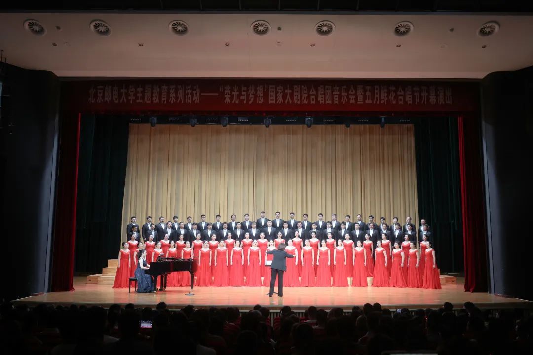 为深入开展学习贯彻习近平新时代中国特色社会主义思想主题教育,丰富教育载体,推动主题教育走深走实,5月12日晚,北京邮电大学举行“荣光与梦想”国家大剧院合唱团音乐会暨五月鲜花合唱节开幕演出,师生共襄高水平音乐盛宴,齐声唱响爱党爱国爱社会主义时代强音。