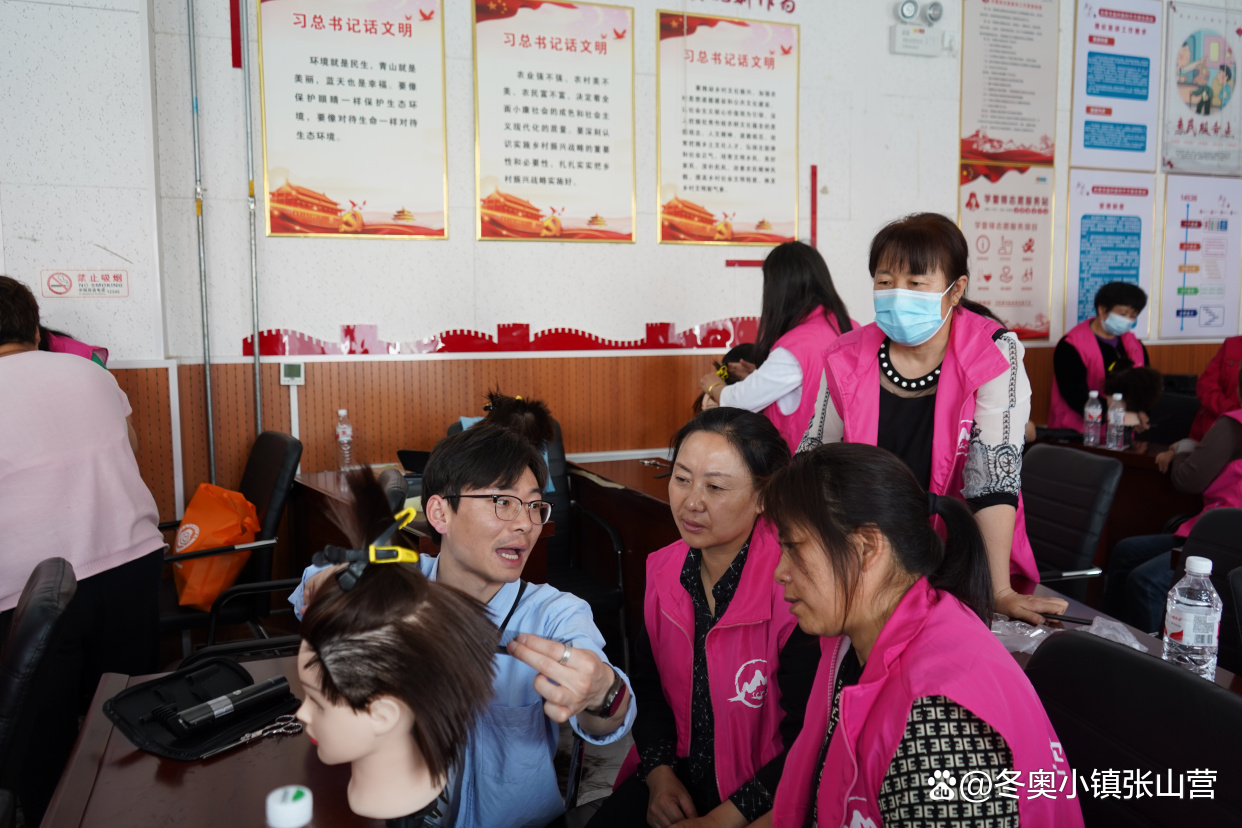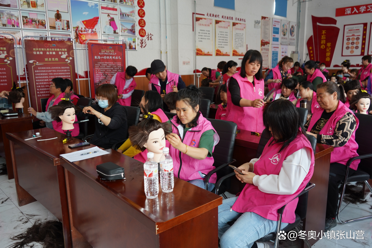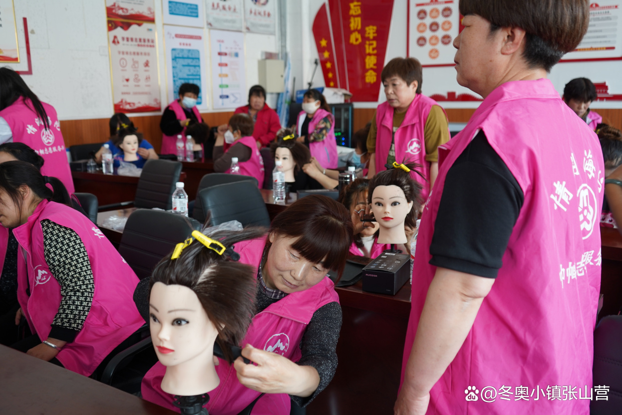 据介绍,这是张山营镇志愿服务系列培训中,针对理发开展的时间最长、培训最系统的一次培训。培训首日,培训老师从简单的基础分层做起,在老师的指导下学员们将30具模型头具有序挂放整个培训室桌角上,按照2—3人一组围坐在各自的模头旁,专心听培训老师的授课。培训师简单介绍了手握剪刀的正确方法以及操作时模头的注意事项,然后逐步进入实操阶段。
