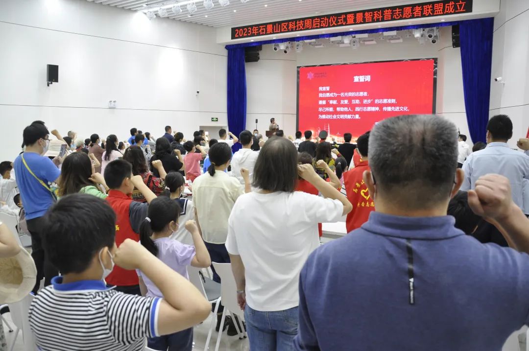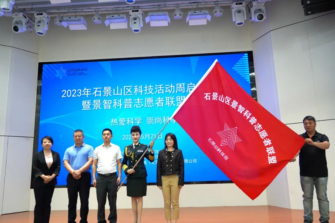 继2023年4月成功举办景智计划启动大会后,在此次石景山区科技周主场活动启动仪式上,区科委联合来自中华志愿者协会、曜阳美煜志愿服务总站、石景山区科普志愿者服务队、中国邮政石景山分公司志愿服务队、北京童悦蔷薇志愿服务队等社会各界志愿服务代表队伍,共同成立“景智科普志愿者联盟”,吹响科普志愿者集结号,以区科技馆为主阵地,将景智科普志愿者联盟打造成为志愿者提升科学素质、为志愿团体开展科普服务,培养青少年责任担当社会意识的平台,不断深入落实全民科学素质行动,为志愿者赋能。