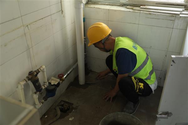 工人在居民家中施工前会拍照留存,待到修复时比对照片,重新铺设防水层,最大限度恢复成原貌;施工时会铺设成品保护垫,保护地板、墙面免受施工造成的污损;设置室外临时卫生间和临时取水处,方便居民使用……社区和施工方想居民之所想,尽可能减小上下水改造对居民正常生活的影响。