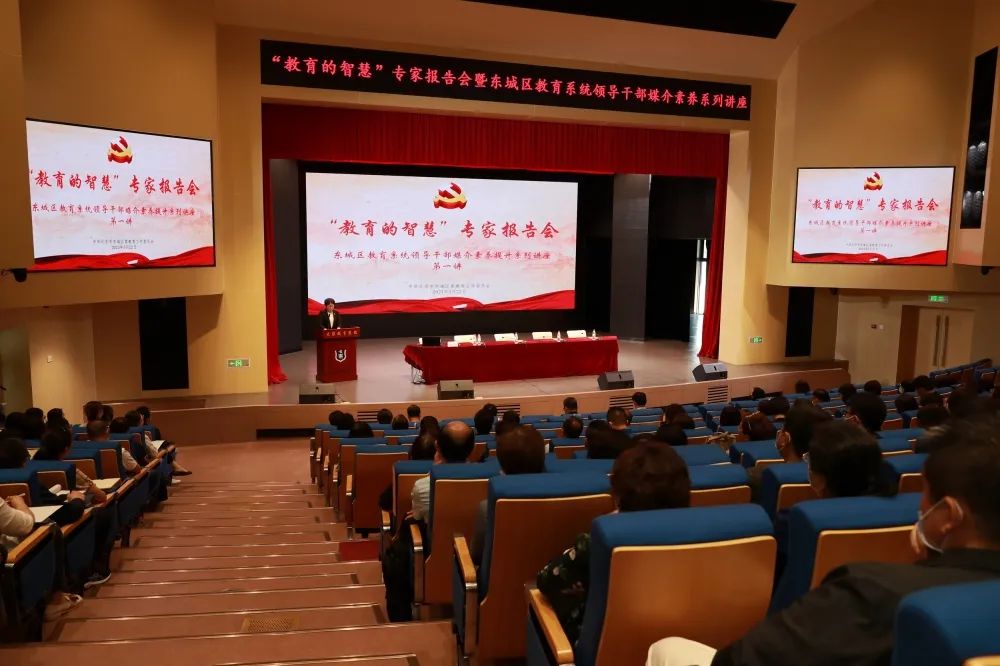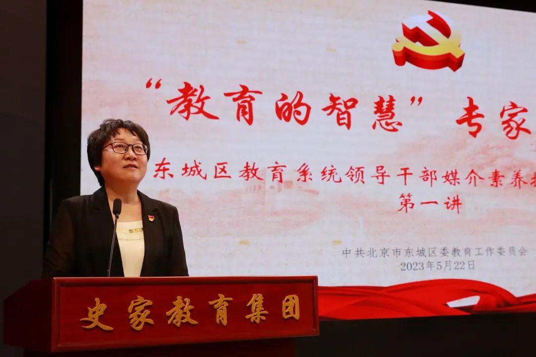2023年5月22日上午,由东城区委教育工委宣传部、东城区教育融媒体中心举办的“教育的智慧”专家报告会暨东城区教育系统领导干部媒介素养提升系列讲座第一讲,在东城区史家胡同小学礼堂开讲。东城区教育两委领导班子成员,教育系统各单位党政主要领导、新闻发言人,教育两委机关全体科长、副科长约350人参加了此次会议。