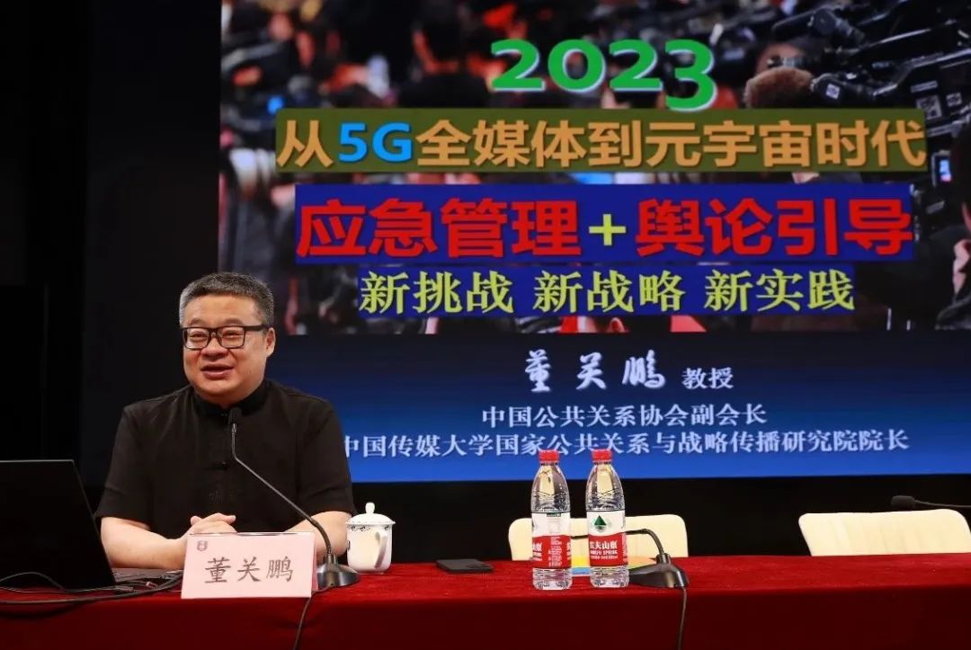 中国公共关系协会副会长、中国传媒大学国家公共关系与战略传播研究院院长董关鹏教授为大家带来了题为《迎接5G融媒挑战:新平台、新战略、新标配》的精彩讲座。讲座中,董教授从全媒体时代的应急管理和舆论引导、媒体大势、公开态势、时政局势、面临风险、核心议题和全新规律等方面,进行了生动详实地讲解,也给大家在实际工作中如何善用善管媒介带来思考与启发。