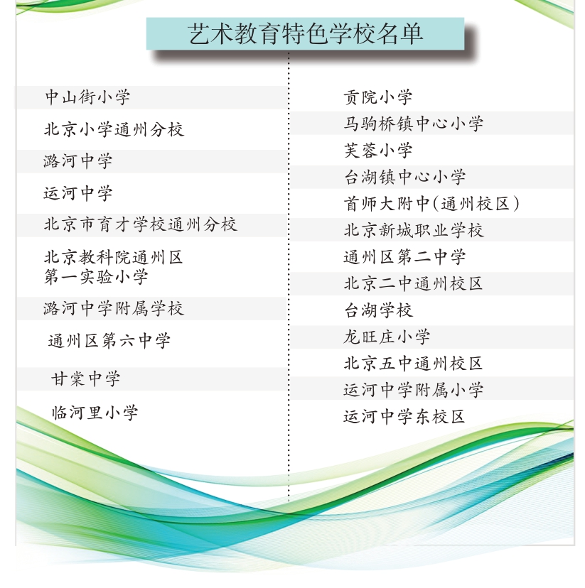 昨日,记者从区教委了解到,通州区中山街小学、北京小学通州分校等23所学校被授予北京市中小学艺术教育特色学校称号。