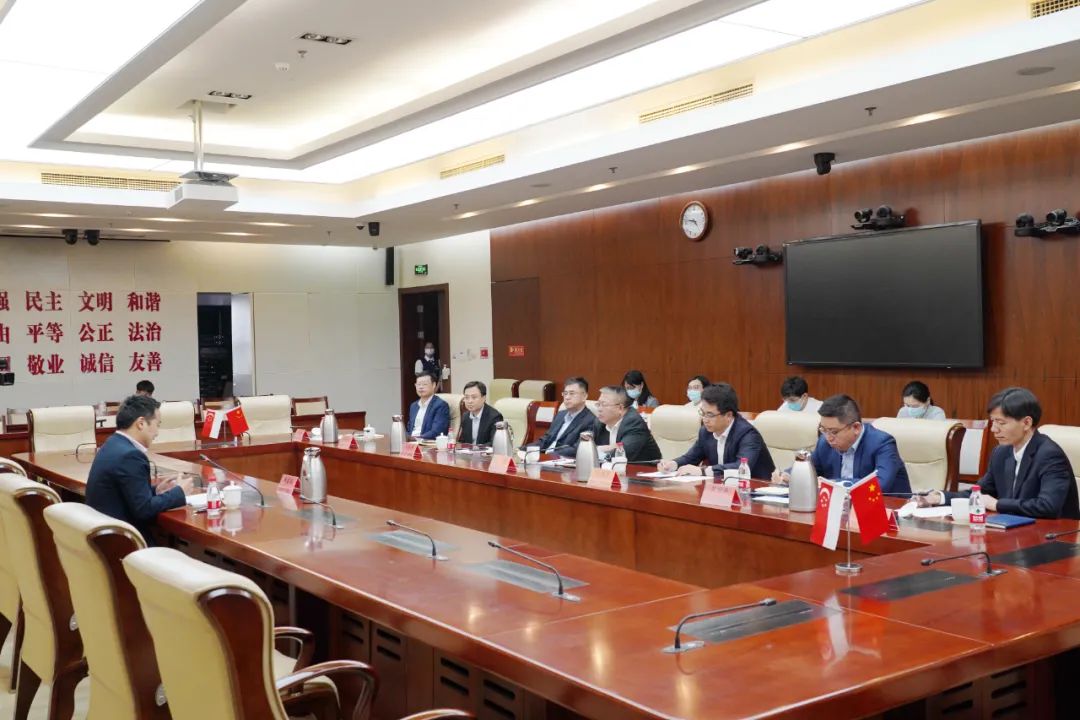5月22日,新加坡驻华大使馆政务参赞林家毅访问石景山区,区委副书记、区长李新会见。新加坡驻华大使馆一行实地调研首钢东南区国际开放合作区项目后,双方就深化务实交流合作开展座谈。