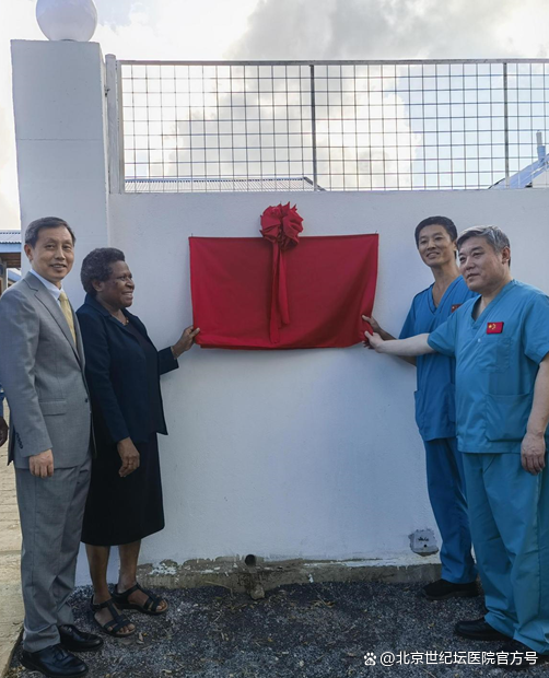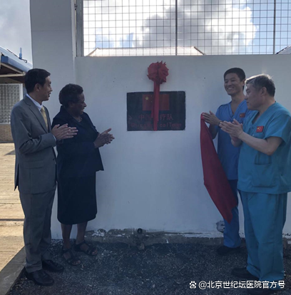 揭牌仪式由中国援瓦努阿图医疗队陈达副队长主持。首先,中国驻瓦努阿图大使李名刚、瓦努阿图卫生部总干事、医疗专家团团长李天佐、中国医疗队队长李凯等共同在大门前为驻地成功揭牌。