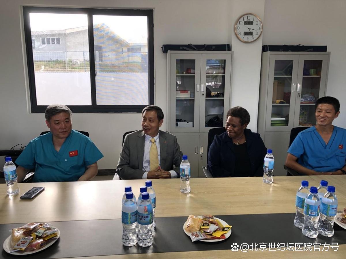 座谈会上,医疗队向参加揭牌仪式的各位嘉宾表示热烈的欢迎,对在驻地建设过程中,亲临和远程指导的领导,给予医疗队大力支持和无私帮助的企业和社会各界人士表示衷心的感谢!驻地装修改造工程历时半年,全体医疗队员克服重重困难,付出艰辛劳动,全程严格监理。中土南太公司承建项目,过程中安排精兵强将,严密组织施工,及时调整工序,减少多雨影响,经历飓风考验,按期优质完成工程,达到竣工验收标准,驻地现已具备良好的居住和生活条件进行交付使用。