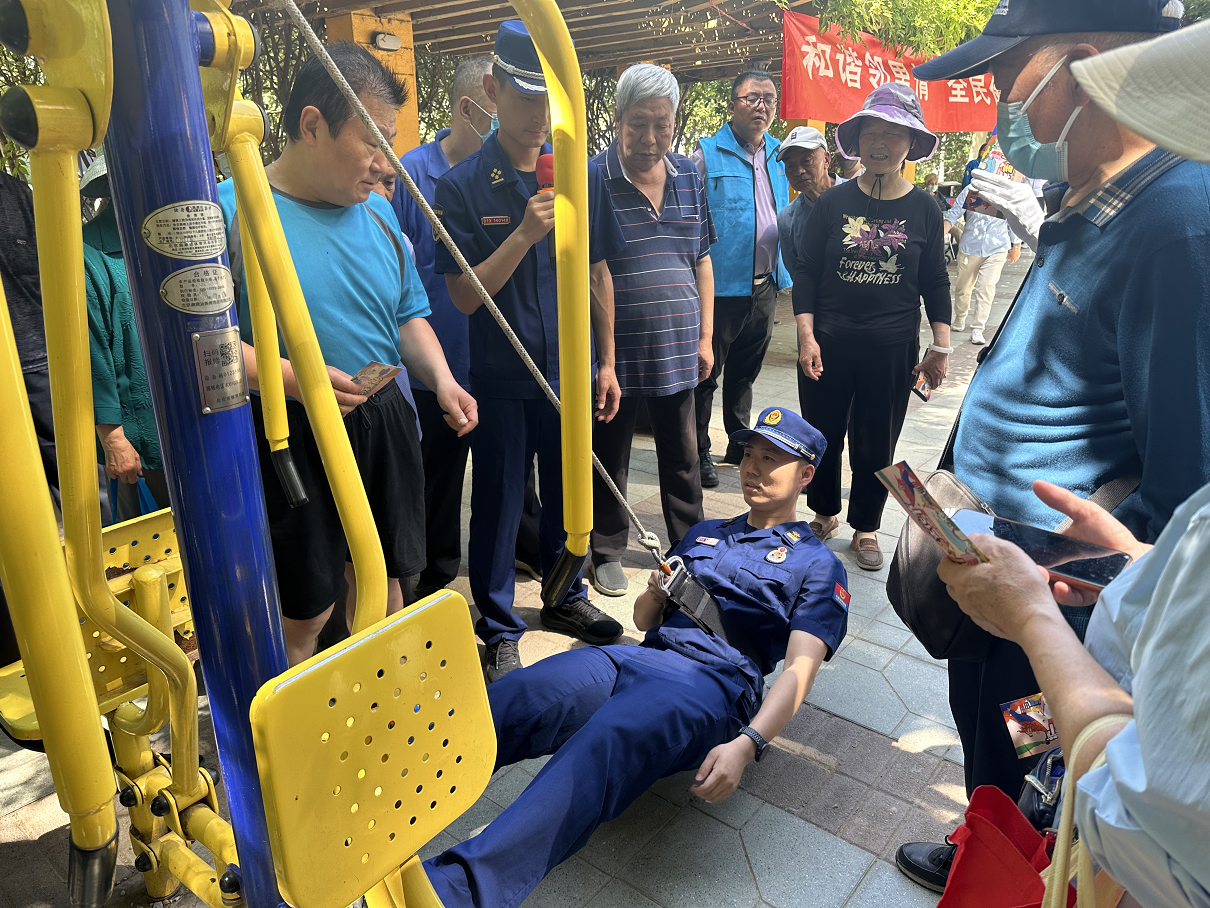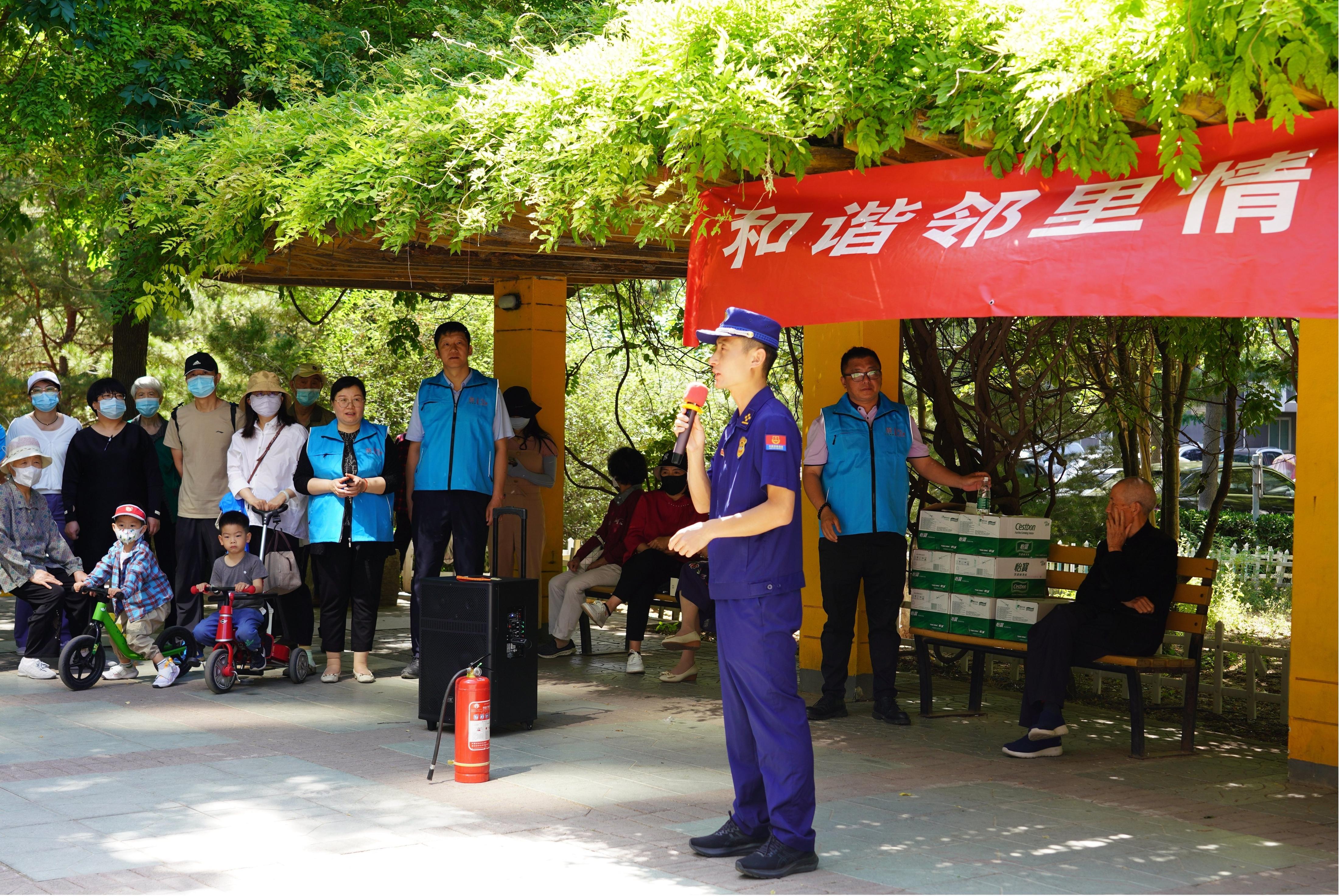 5月23日,长安新城第一社区以一场消防安全宣传拉开了“和谐邻里情,全民健身行”的“邻里节”活动序幕。活动现场,丰台区消防支队的谢队长向居民详细讲解安全用电、安全用气、灭火器的使用方法等家庭消防知识,倡导居民做到家庭消防安全自查,养成良好的用电用气习惯。随后,消防队员们向大家演示了灭火器、消防栓水带的使用方法,手把手教居民如何打“逃生”绳结,居民边学边说道:“这样的技能很实用,一旦危险来临,这就是安全保障。”通过消防知识的普及让广大居民进一步提高了居家防火安全意识,增强了应急自救能力,并且掌握初级火灾事故的一般处置程序,为社区消除火灾隐患打下了坚实基础。