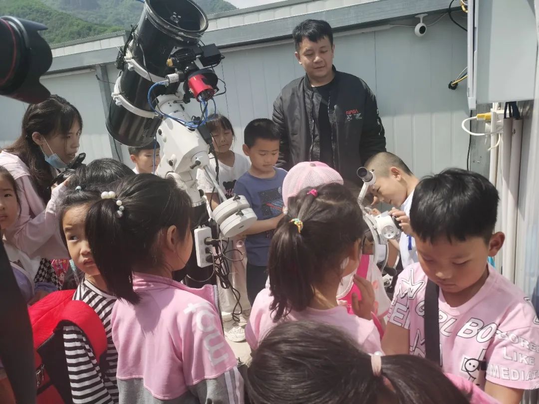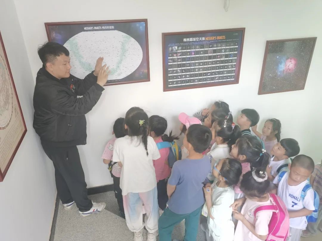 接着,百花山保护区珍稀动物救护站刘小龙同志带领学生们参观百花山天文台,了解到了天文望远镜和赤道仪的原理,以及未来可以提供拍摄照片的途径。他作为一名资深天文爱好者,利用自己积累的天文知识耐心的为同学们讲解各种天文知识疑问,引导学生们根据星图寻找到属于自己的星座,拍下属于自己的天文照片。在轻松愉快的氛围中获得了天文启蒙,有利于让学生认知客观世界,有利于培养学生观察、思考、理解自然事物的科学精神,是提高学生素质教育的重要途径。