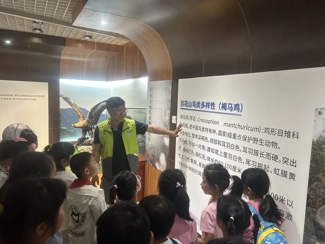 活动中,开展了百花山科普基地研学教育活动,由百花山管理处科普宣教科副科长杨淇为学生们介绍保护区的生物多样性本地资源丰富、百花山形成过程及近些年保护区生物多样性保护概况,也向同学们诠释“引人瞩目”的“迎豹归家”计划和重要意义向同学们诠释。
