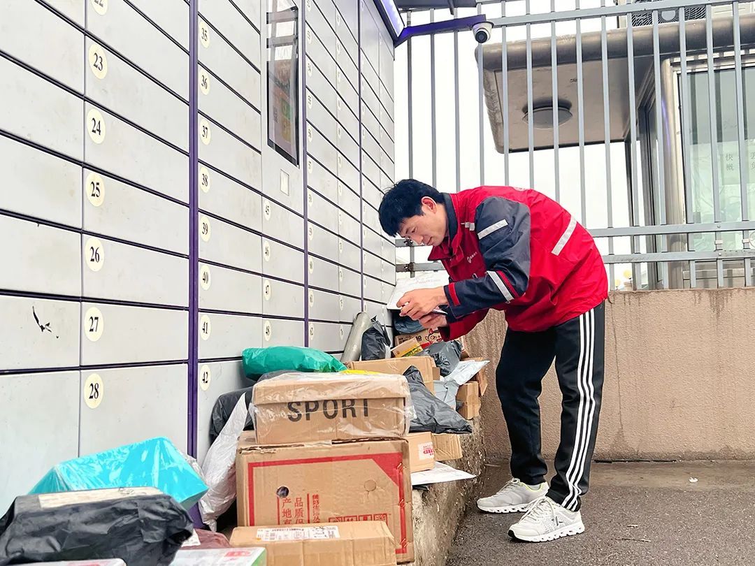 荣富做快递员时,每日码放好快件并扫描快件条码。