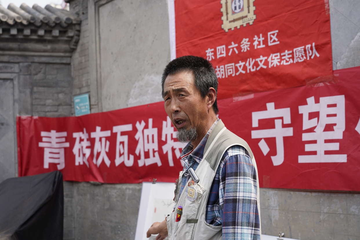 文保志愿队成员向小记者们介绍了东四胡同的历史、文化特色以及自己发现文物、保护文物的做法。大家还就影壁墙上的“戬毂”二字进行了讨论交流。