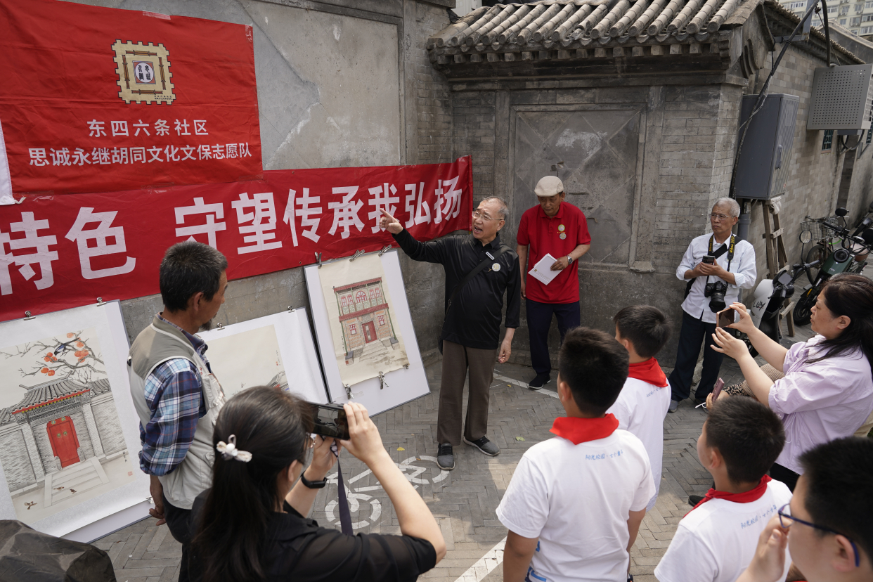 东城区东四六条社区“思诚永继”胡同文化文保志愿队日前在崇礼住宅接受了一次特殊的采访。东四七条小学“小记者团”利用班会时间走出校园来此探访,了解胡同文化。