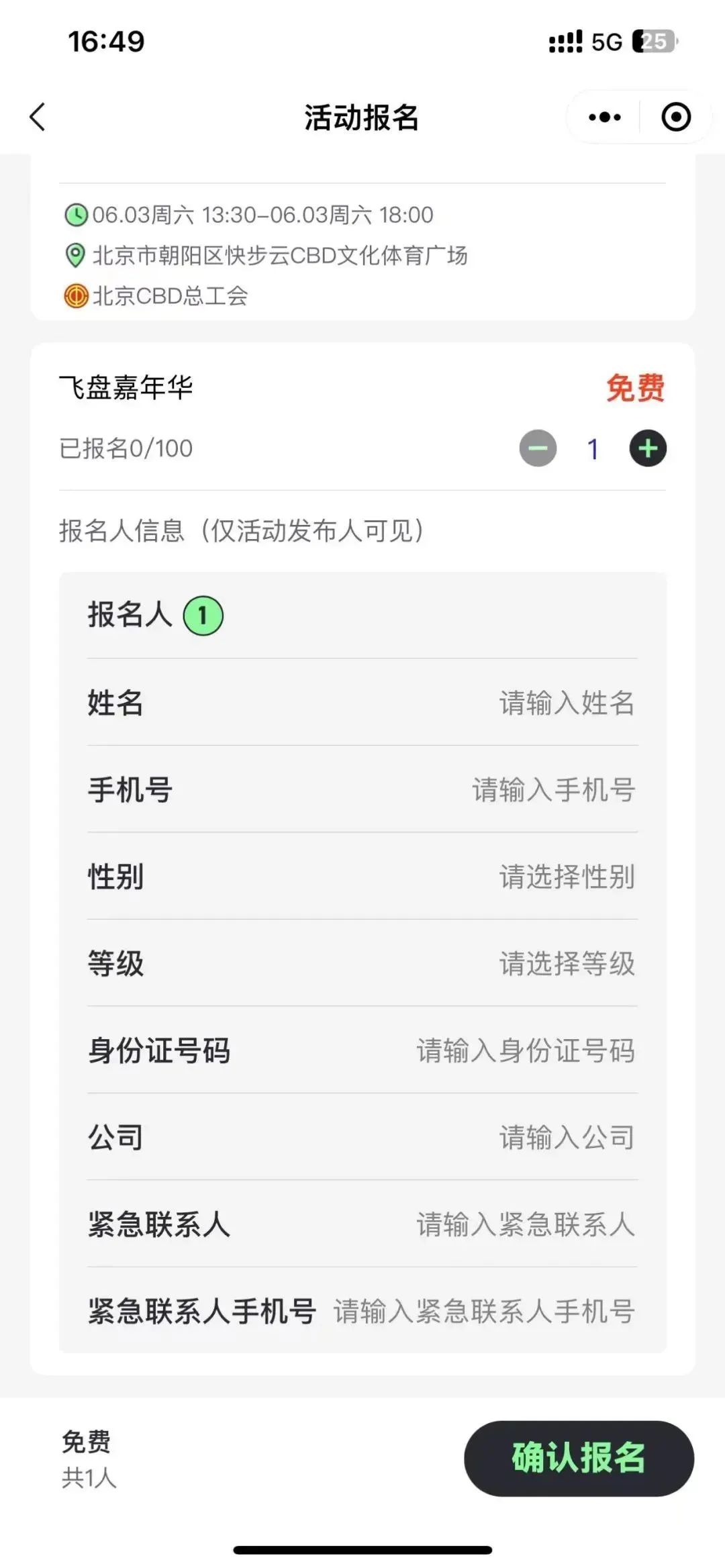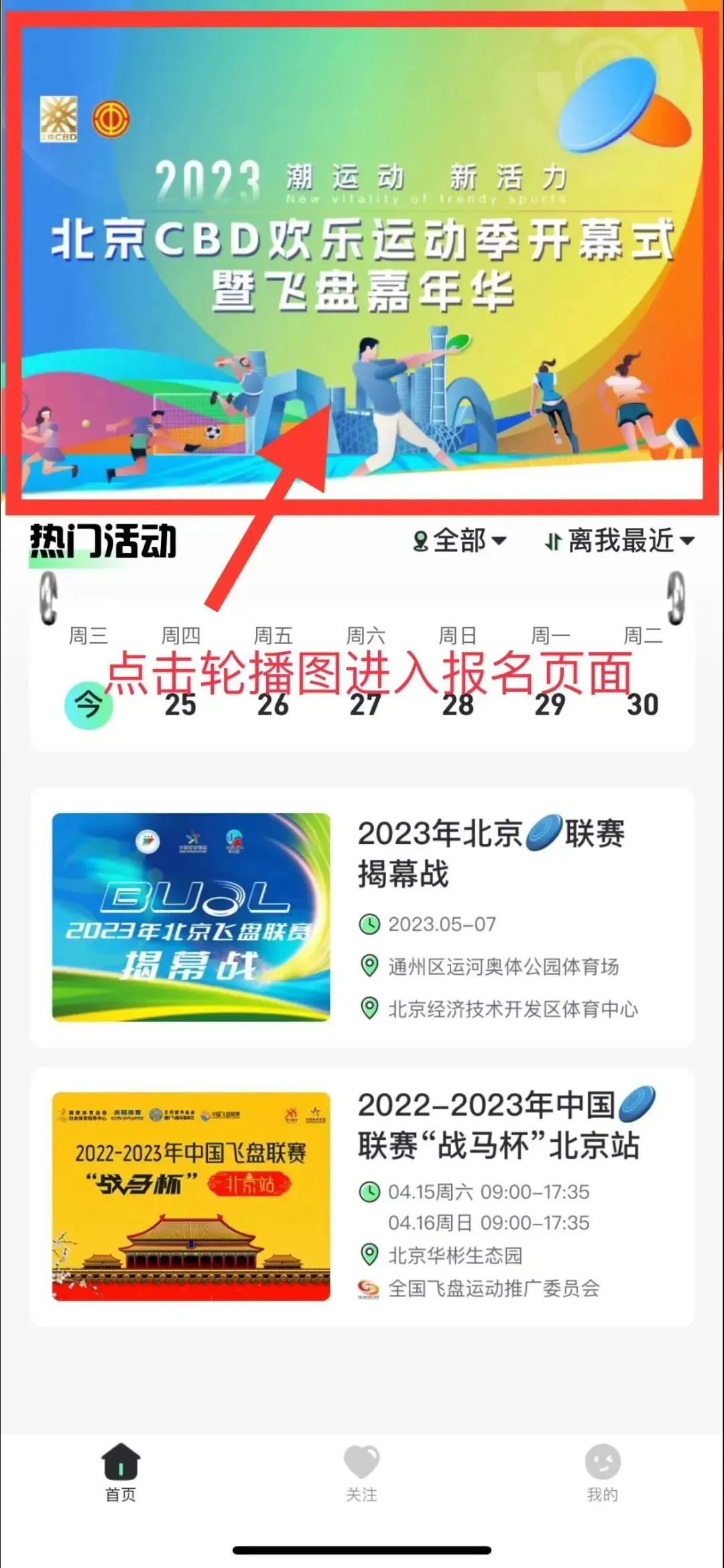 第二步,点击下方菜单栏“飞盘活动”进行报名。