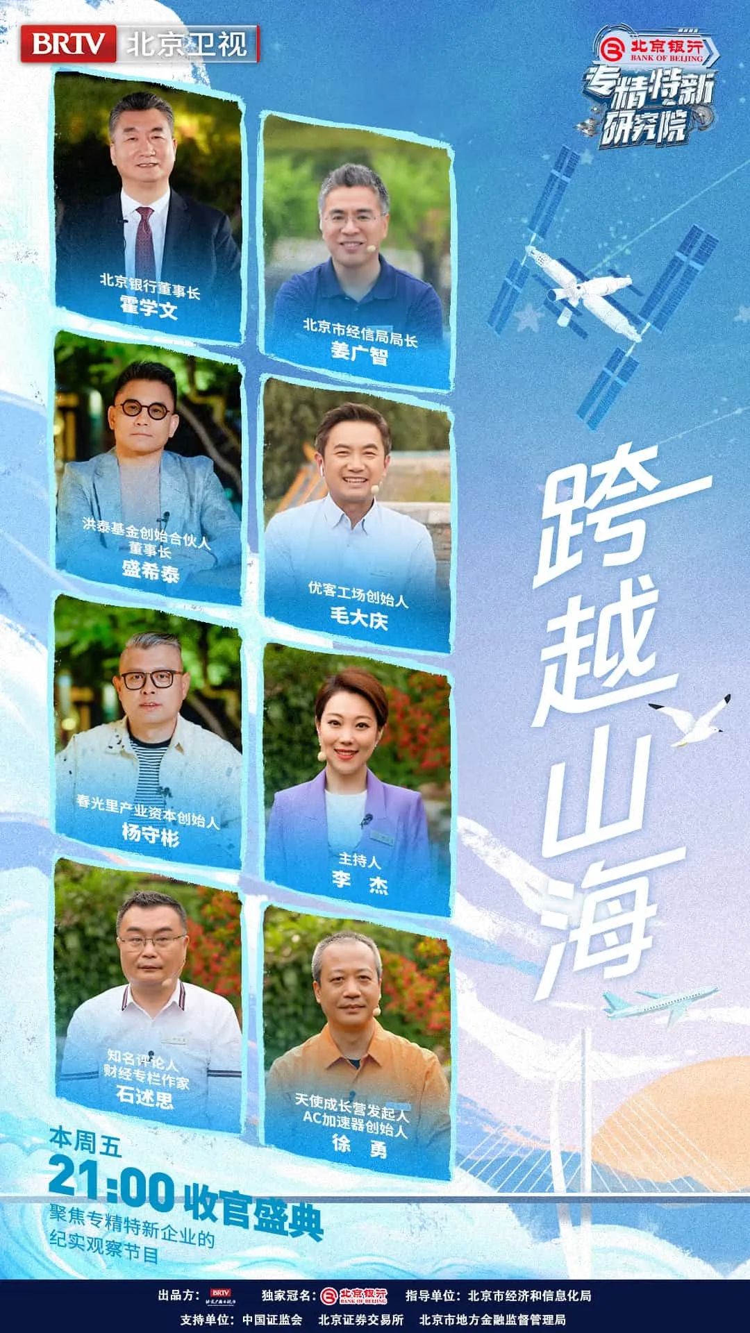 今晚21:00,由北京广播电视台出品,北京银行独家冠名的全国首档聚焦专精特新企业的纪实观察类节目《专精特新研究院》即将迎来本季的收官盛典。节目特别邀请到北京银行董事长霍学文、北京市经信局局长姜广智、洪泰基金创始合伙人/董事长盛希泰、优客工场创始人毛大庆、春光里产业资本创始人杨守彬、知名评论人/财经专栏作家石述思、天使成长营发起人/AC加速器创始人徐勇,他们将和主持人李杰以及专精特新企业创始人肖慧斌、边宝丽、田刚印、张成胜、张逸凌、王藜、刘罡一起开启本季《专精特新研究院》的收官盛典。