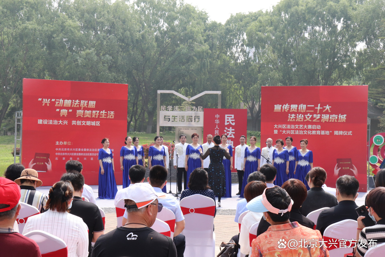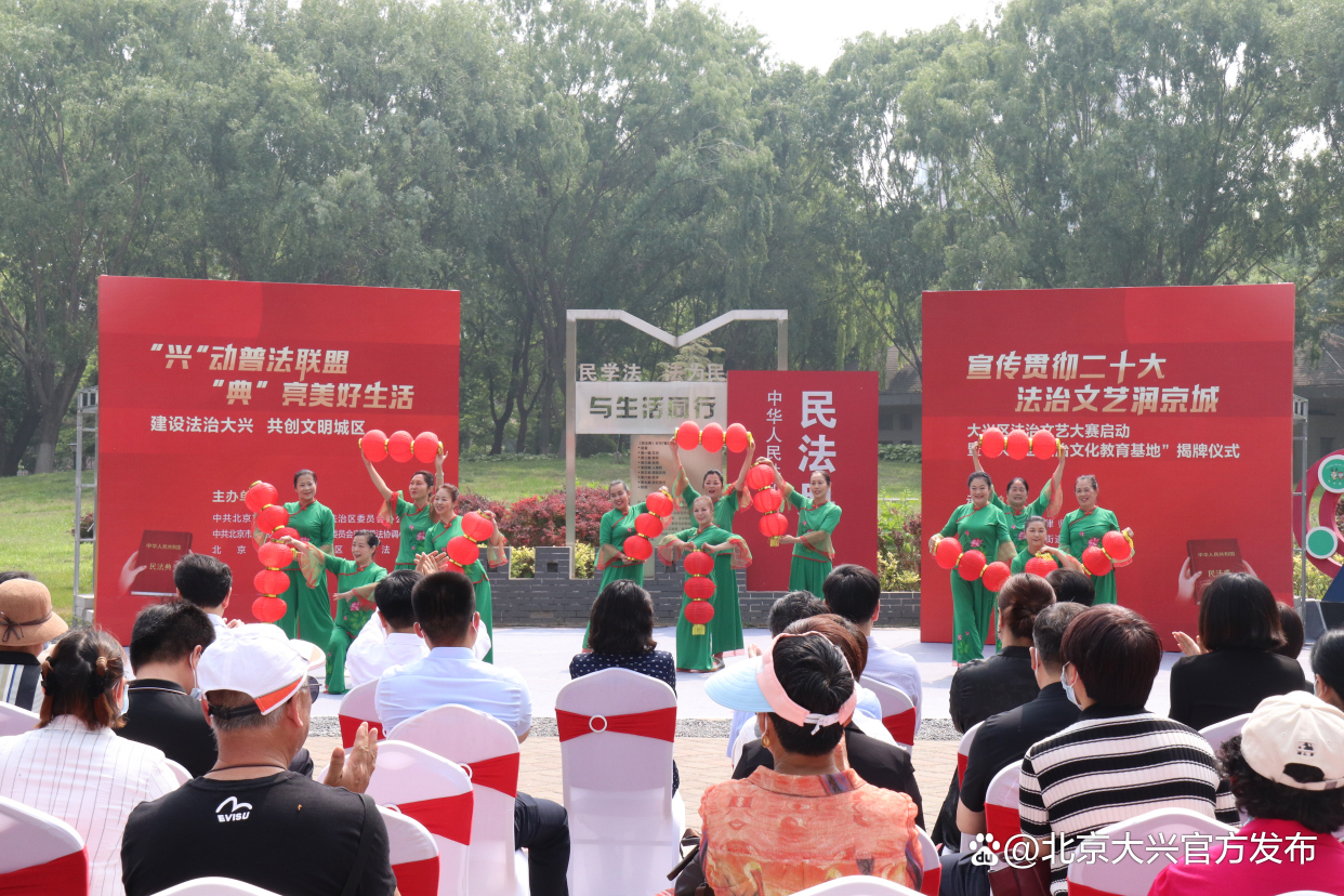 活动中,与会领导为大兴区法治文化教育基地揭牌。为深入贯彻落实习近平总书记“把法治教育纳入国民教育体系和精神文明创建内容”要求,切实提升全民法治意识和法治素养,大兴区司法局在北京市司法局、大兴区委区政府及兄弟单位的大力支持下,于2021年底建成全市首家规模性民法典主题普法公园,运用展板、迷宫、花鼓、小品雕塑等形式向公众宣传民法典,真正地让民法典走到群众的身边,让群众实实在在感受到法治的魅力。