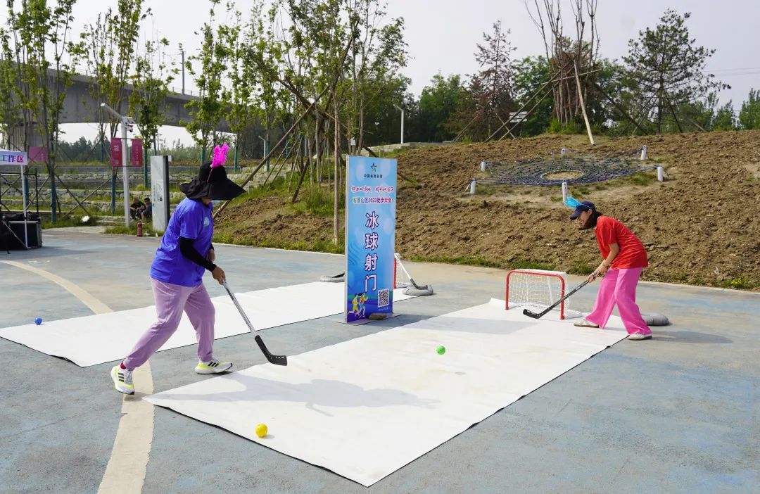现场还设置了冰球、冰壶等冬季运动项目互动,广大群众在欢声笑语中乐享全民健身活动。