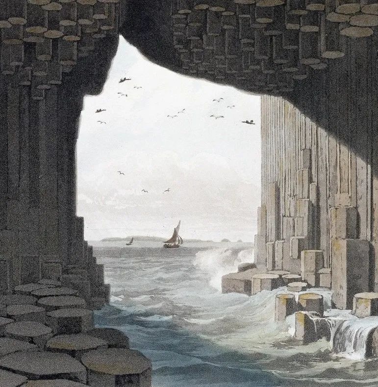 《在斯塔法岛的芬格尔岩洞中》(局部),威廉·丹尼尔绘