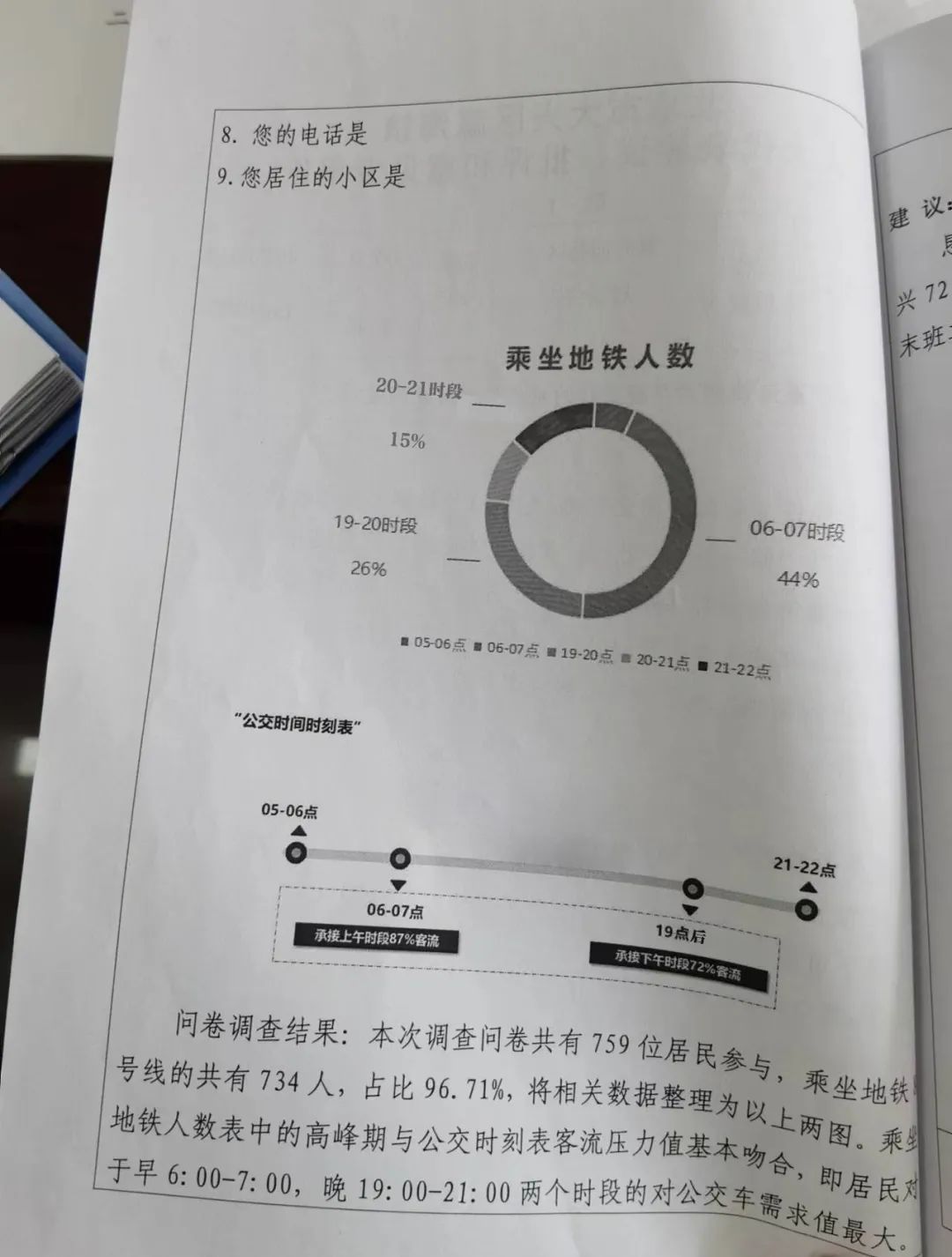 比如,镇人大制作线上调研问卷,围绕“要不要延长、延长到几点”等问题,了解居民出行需求,还到地铁、公交公司了解客流量。有759名社区居民实名填写问卷,大多数人希望公交能延长到21:00,便于下班乘车回家。地铁运营数据也显示,瀛海站每天近万人的客流量中,15%集中在20:00-21:00,其中大多数是下班回家的瀛海居民。