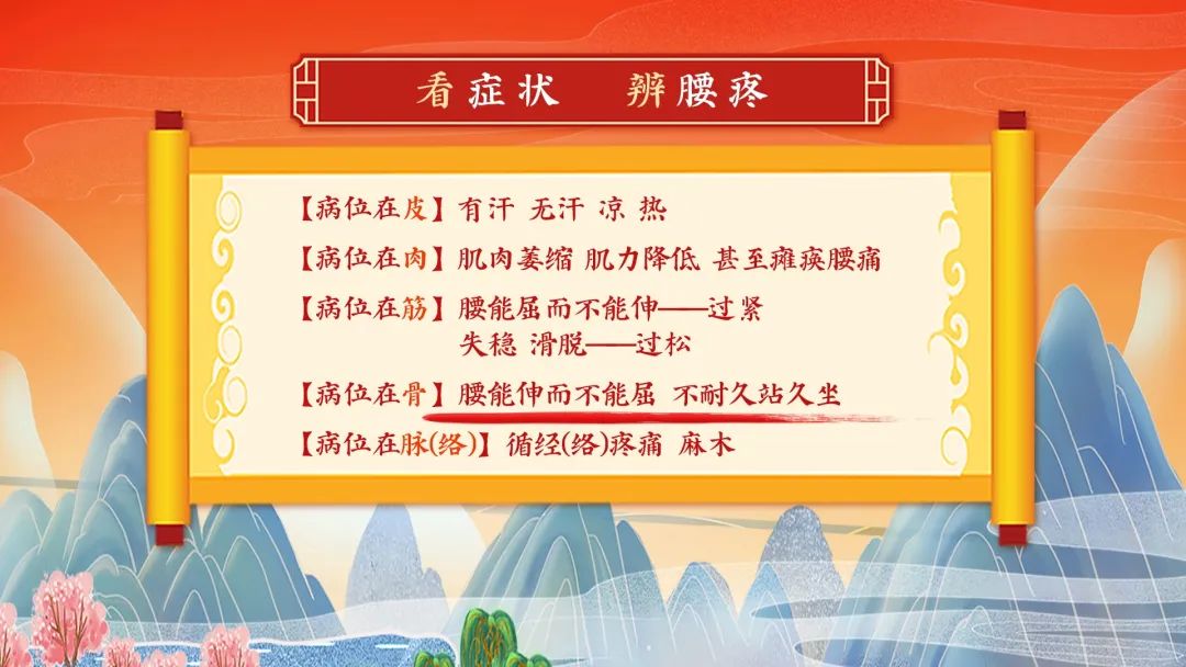 高院长独特的诊疗思路,就是从痰瘀辨腰病!高院长的老师孙树椿教授在治疗慢性骨伤病时,就非常重视祛痰化瘀,高院长在师承的基础上,通过多年临床总结和思考,认为现代影像上一些具体的骨伤科病理改变,比如椎间盘中突出的髓核、肥厚的黄韧带、腱鞘上的囊肿等,都属于中医的痰瘀。而根据中医五体理论,痰瘀凝结在皮、肉、筋、骨、脉不同病位,又会有不同表现,对症下药就能事半功倍!腰疼伴随哪些表现和疼痛特点,就说明跟痰瘀有关? 又该如何初步判断自己的痰瘀在皮肉筋骨脉哪里呢?