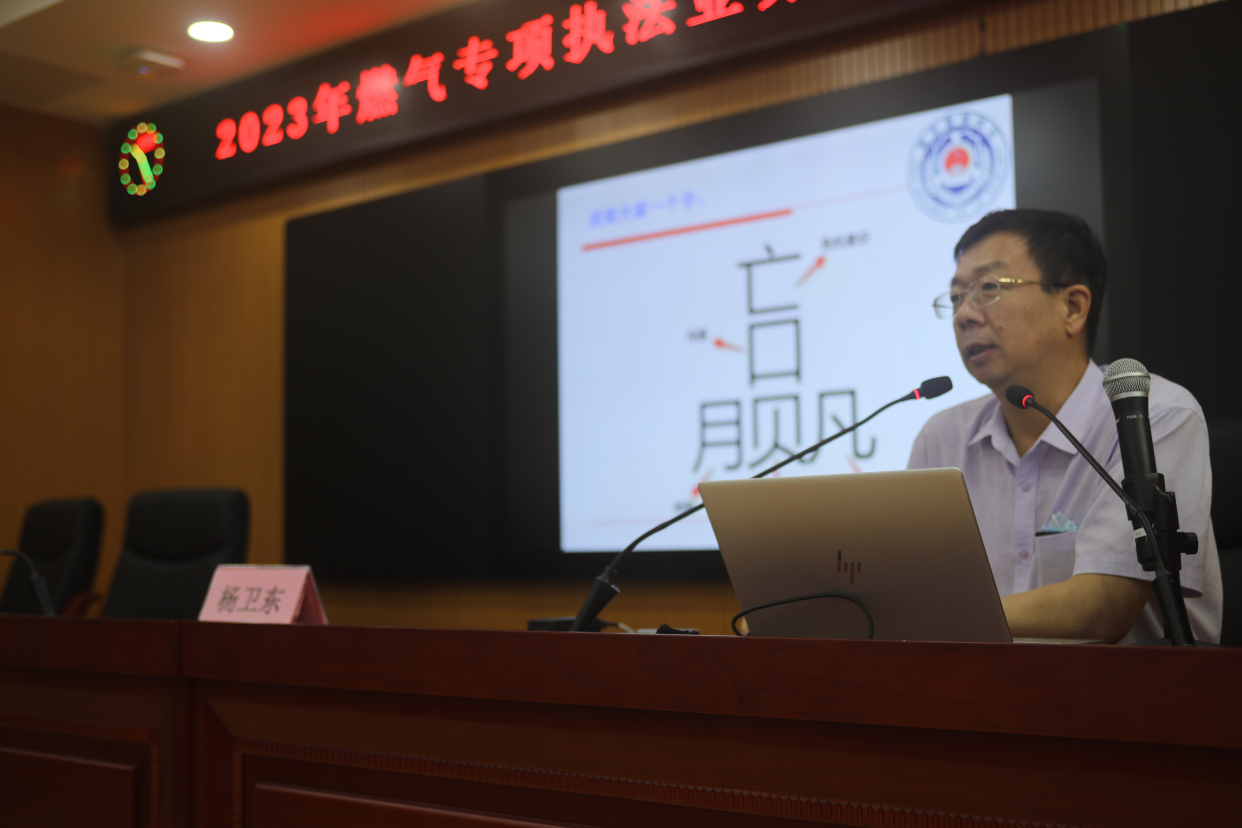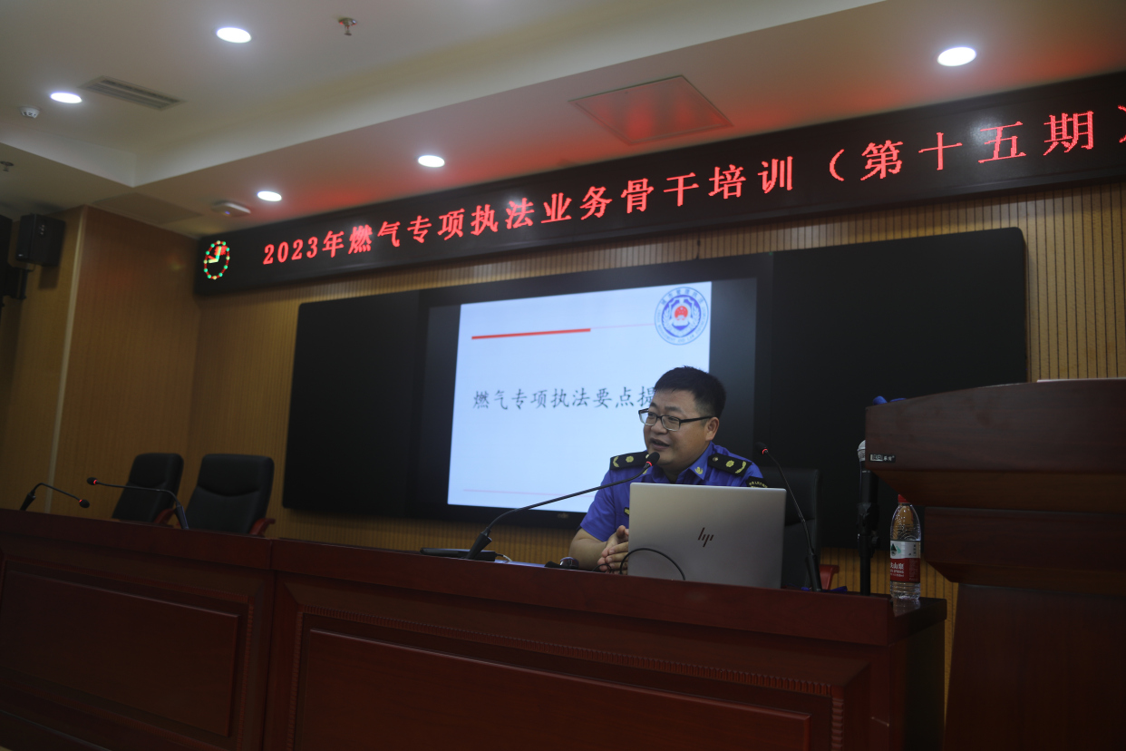 之后由西城区城管执法系统优秀兼职教员、广外街道综合行政执法一队魏永奎同志以城管系统燃气安全职权,涉及法规及燃气工程规范为切入点,结合过往实际执法案例和违法行为图片,从燃气用户、燃气燃烧器具经营企业、燃气供用气场所三个方面进行检查要点的梳理讲解,并对具体开展执法时用餐场所、用气场所及储气场所的细节进行规范与明确。