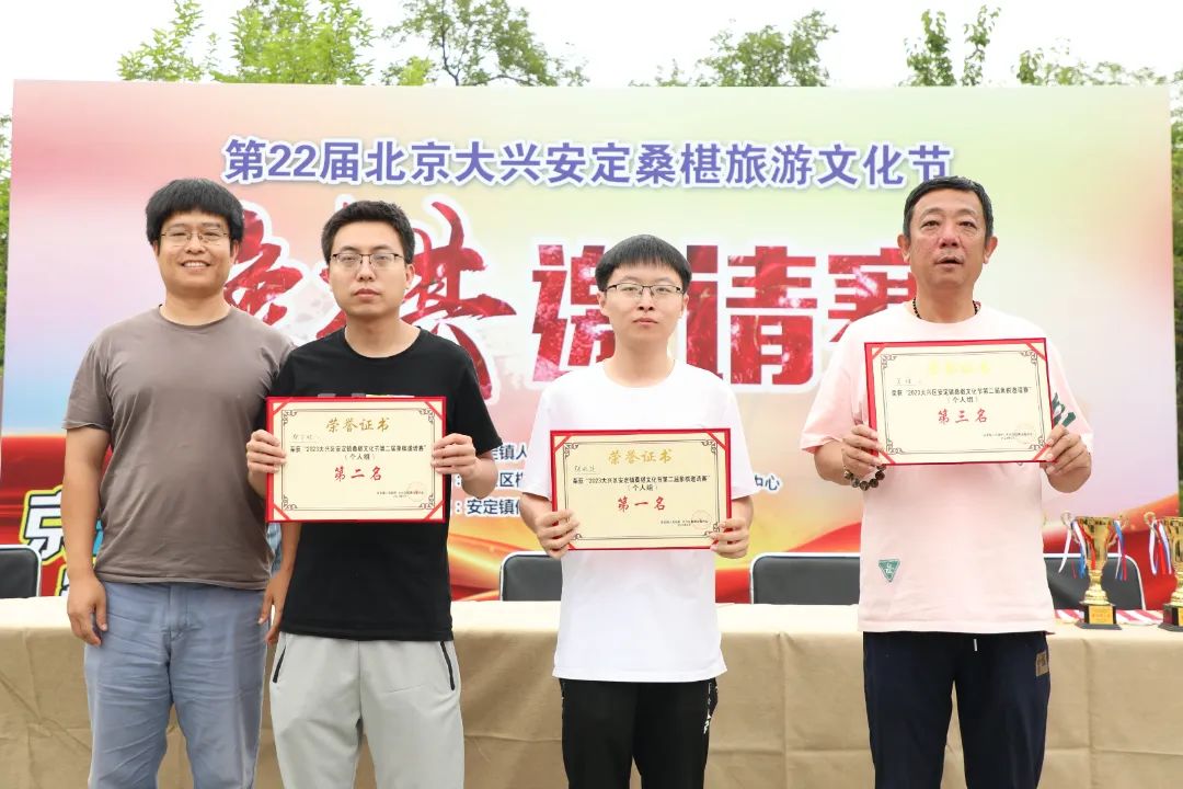 5月31日,第22届北京大兴安定桑葚旅游文化节象棋邀请赛在御林古桑园举办,大兴区体育局,安定镇党委、区棋牌运动协会相关负责人参加活动。