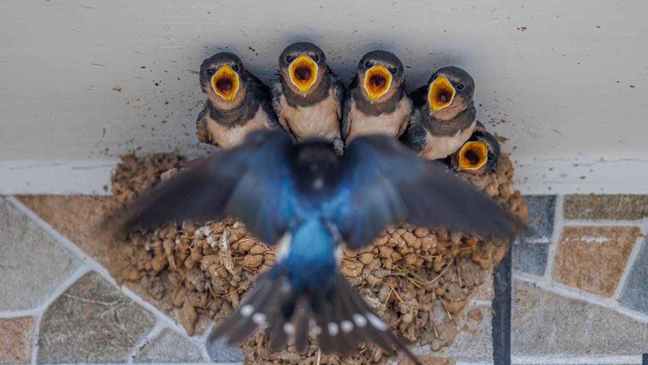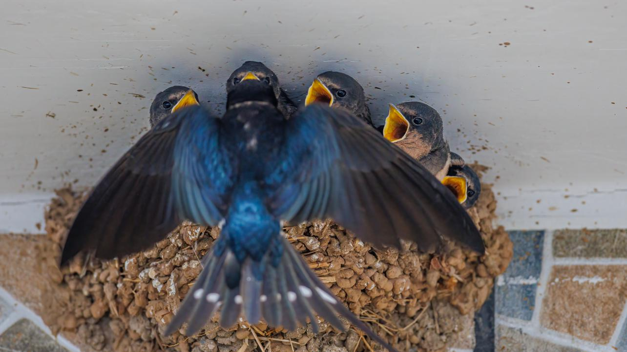 (这只家燕妈妈有5只雏燕需要照顾和喂养)