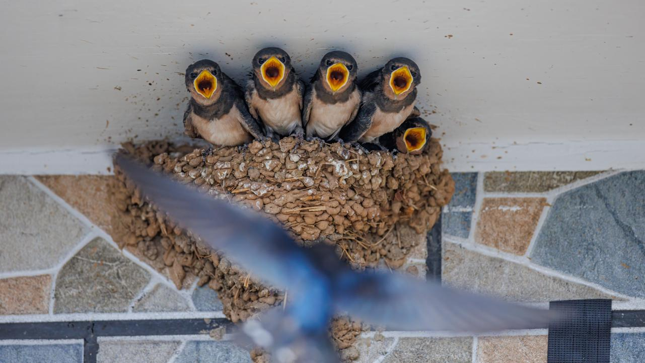 在密云区不老屯镇学各庄的“爱鸟之家”屋檐下,住着一窝家燕。普通家燕是人们最常见的夏候鸟,冬去春回,在房梁上、屋檐下筑巢安家,繁衍后代。燕妈妈是这儿的常住居民,每年春天如期而至。
