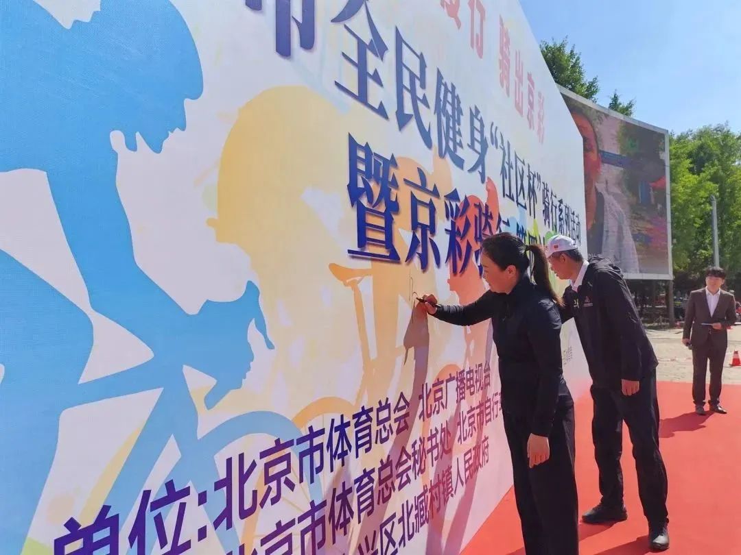 北京市自行车运动协会和大兴区社会体育管理中心相关负责人,与骑友们纷纷为活动留下“京”彩一笔。