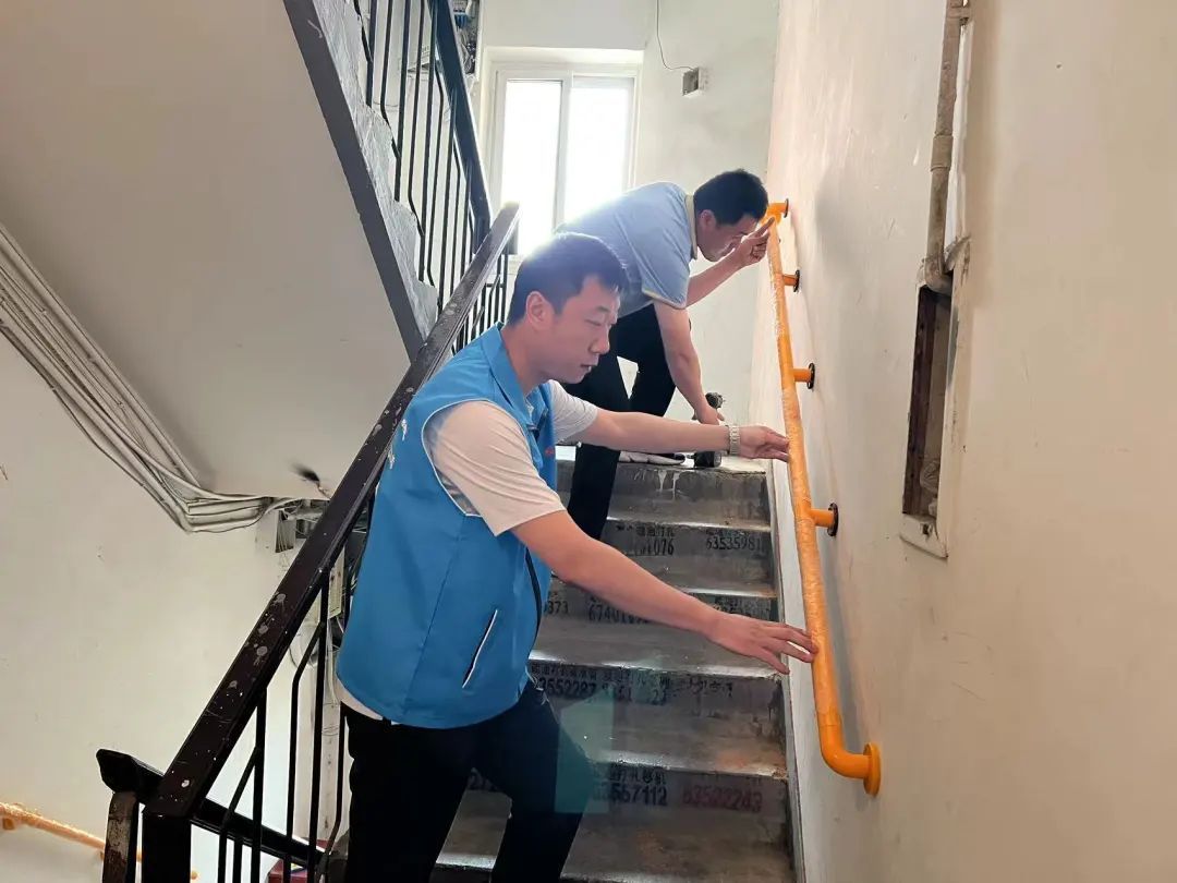 “这栋楼建得早,当时楼道没有安装扶手。现在年龄大了,每次想出门的时候,走到没有扶手台阶的地方我就很担心。尤其到了下雨天,楼梯湿滑,生怕摔倒。”开阳里第四社区工作人员走访居民时,徐阿姨也表示想加装扶手。