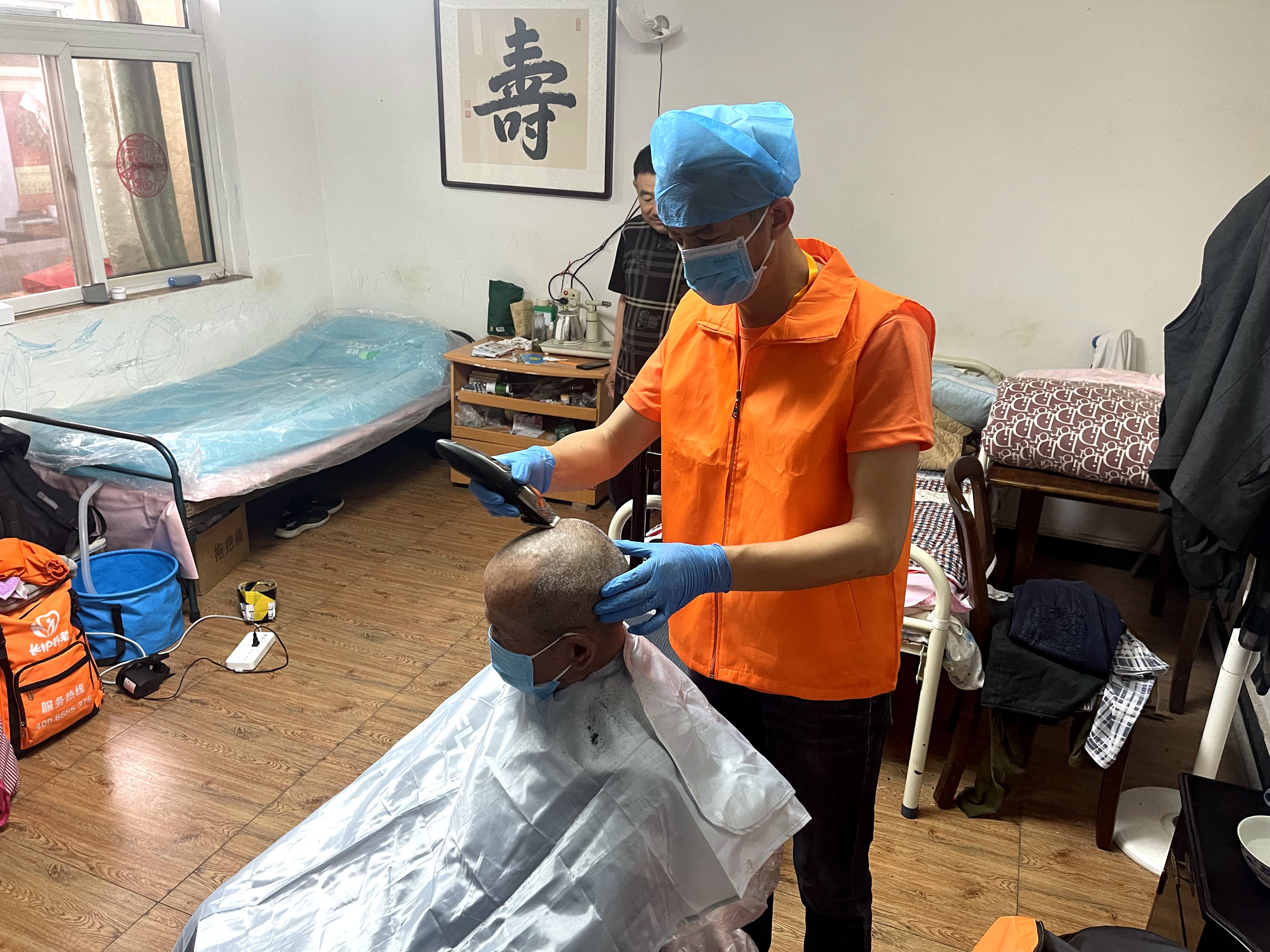 洗完澡后,助浴师还为李先生剪指甲、抹润肤露、按摩身体,提供周到细致的服务。