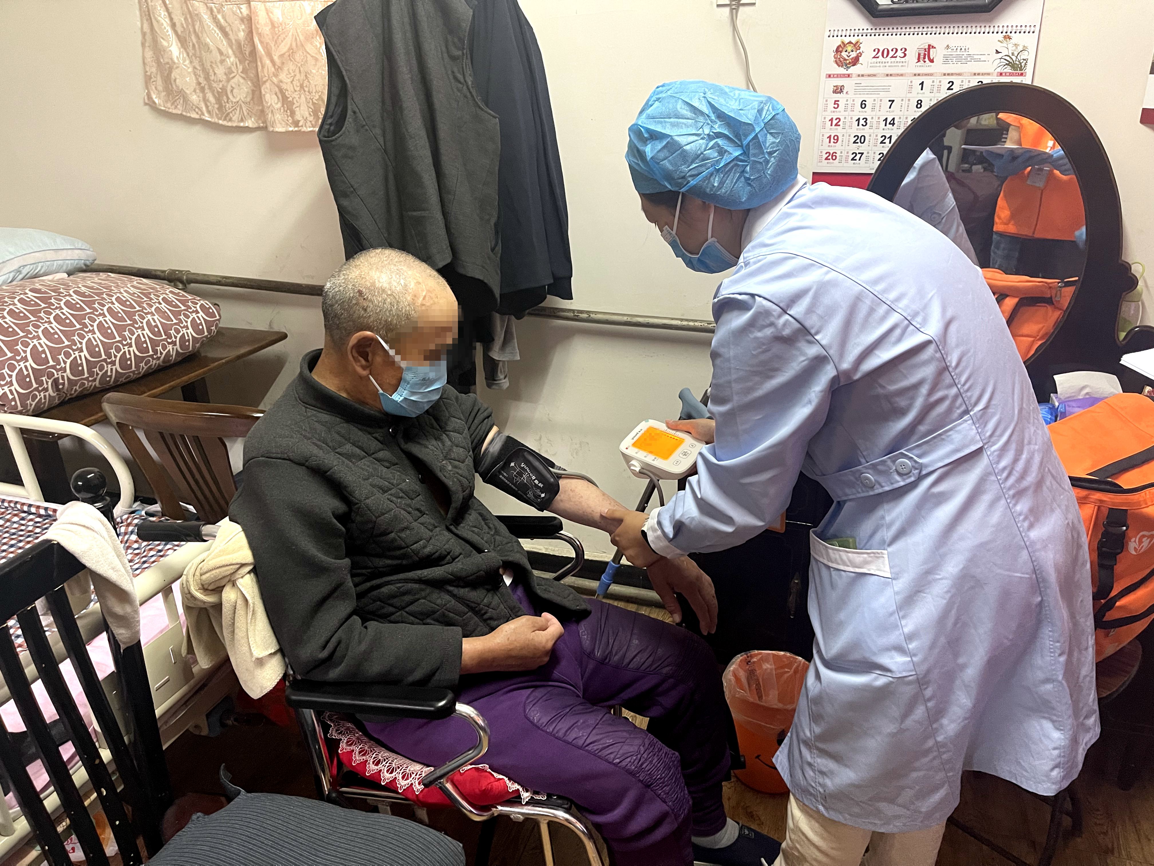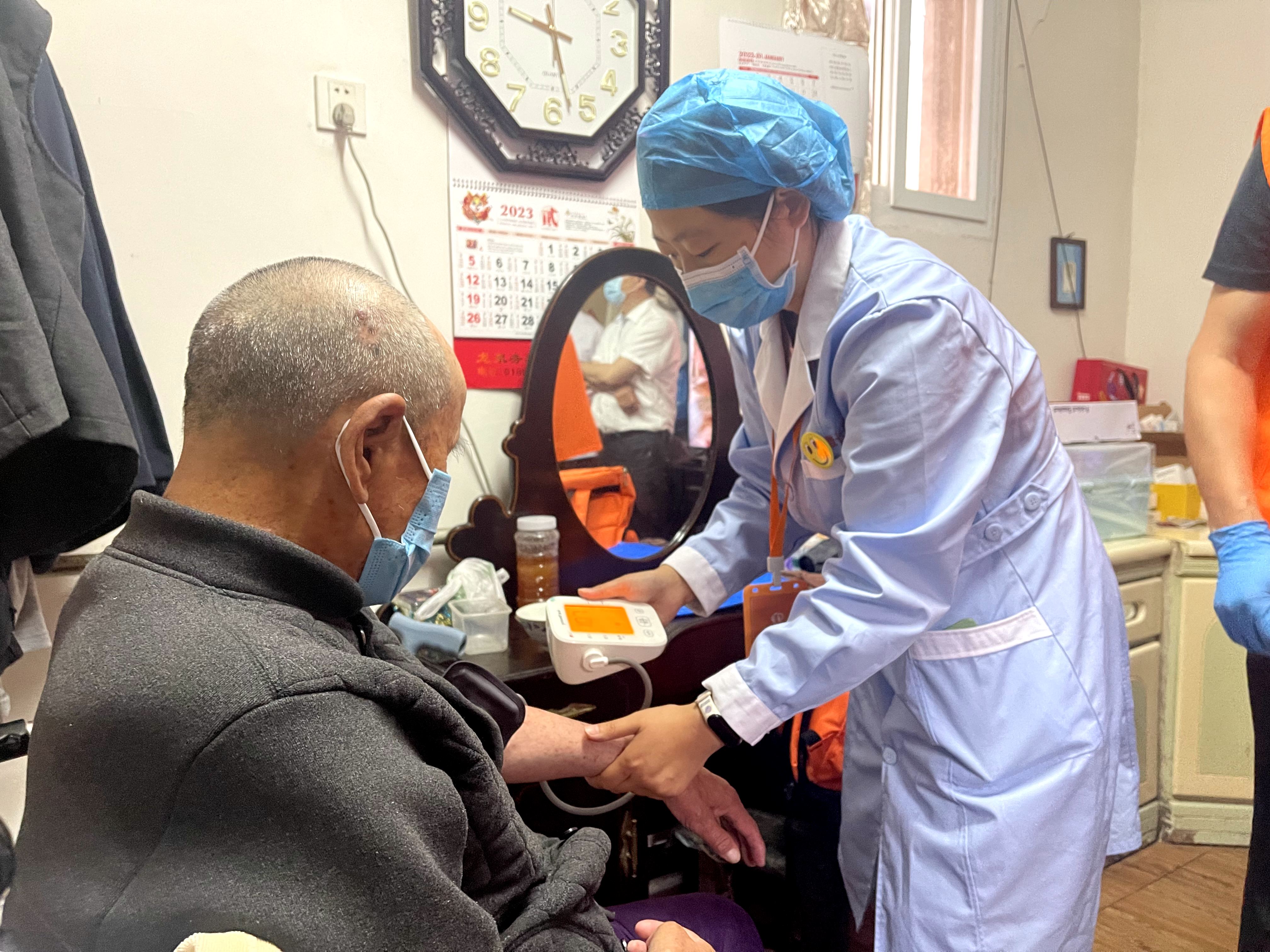 “爷爷,最近身体怎么样,挺好的是吧,咱们先量个血压好不好。”护士对李先生说。
