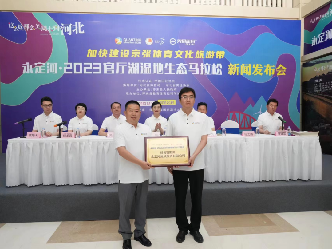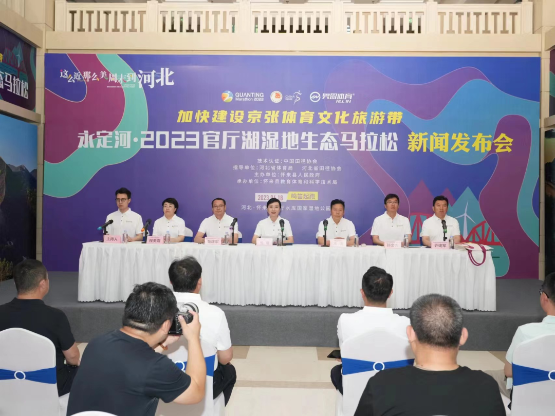 6月5日下午,永定河·2023官厅湖湿地生态马拉松新闻发布会在国家体育总局训练局北京体育馆举行。
