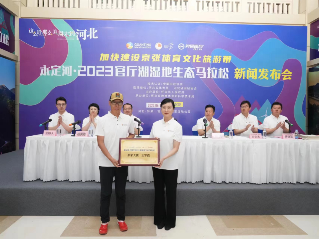 授牌仪式上,中国著名长跑运动员、亚特兰大奥运会5000米金牌得主王军霞被授予赛事形象大使(团队成员代为接牌)。永定河流域公司被确定为大赛冠名赞助商。