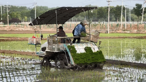 插秧机在稻田里来回穿梭
