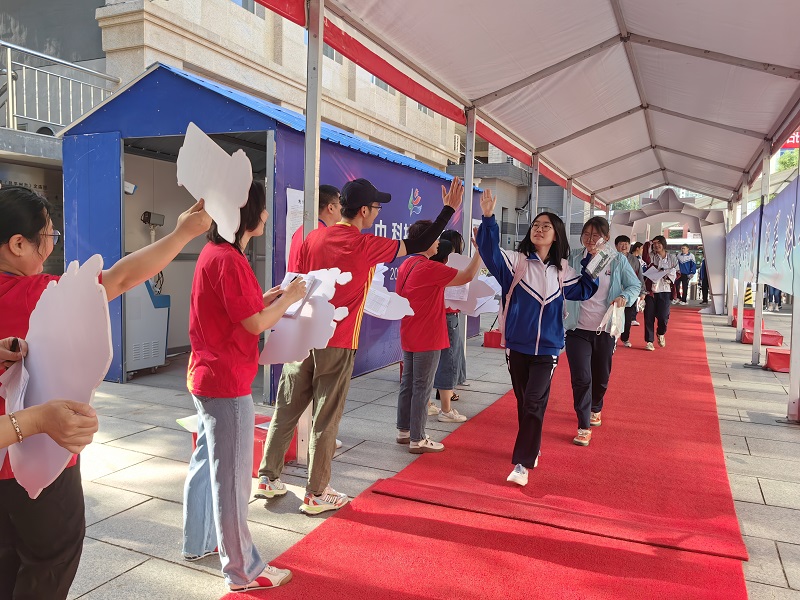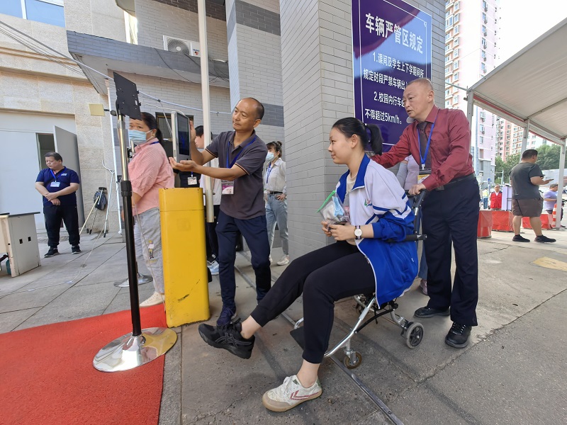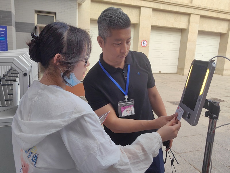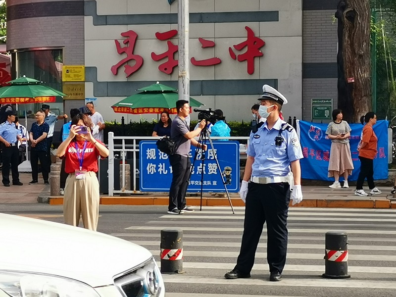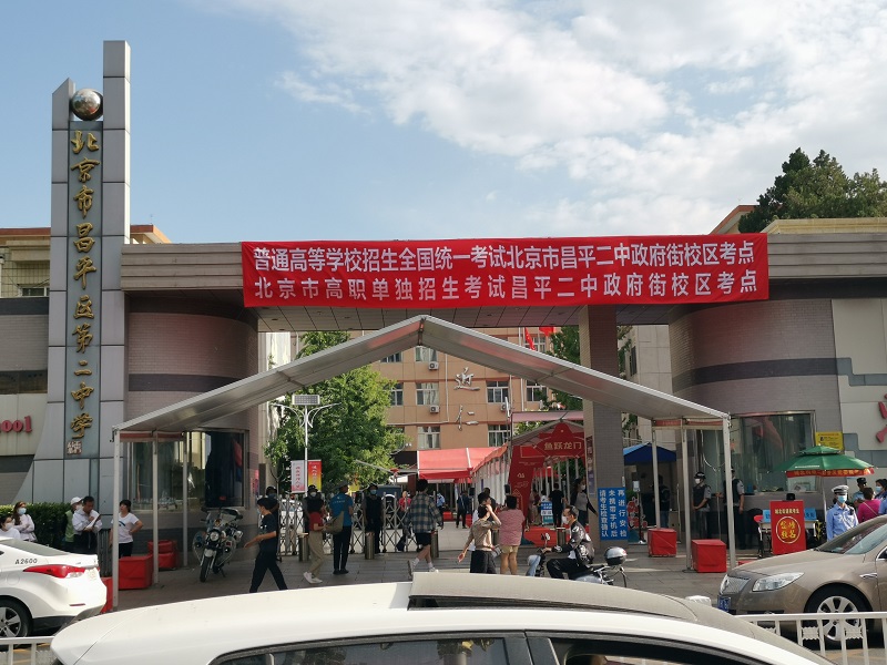 今早,记者在昌平一中、昌平二中考点看到,考生们在现场工作人员的指引下,经过身份验证等“两验、两检”后,有序进入考场。拍摄:王红、向凌潇、墨竹、波仔