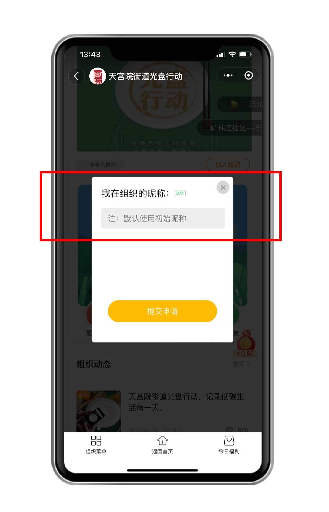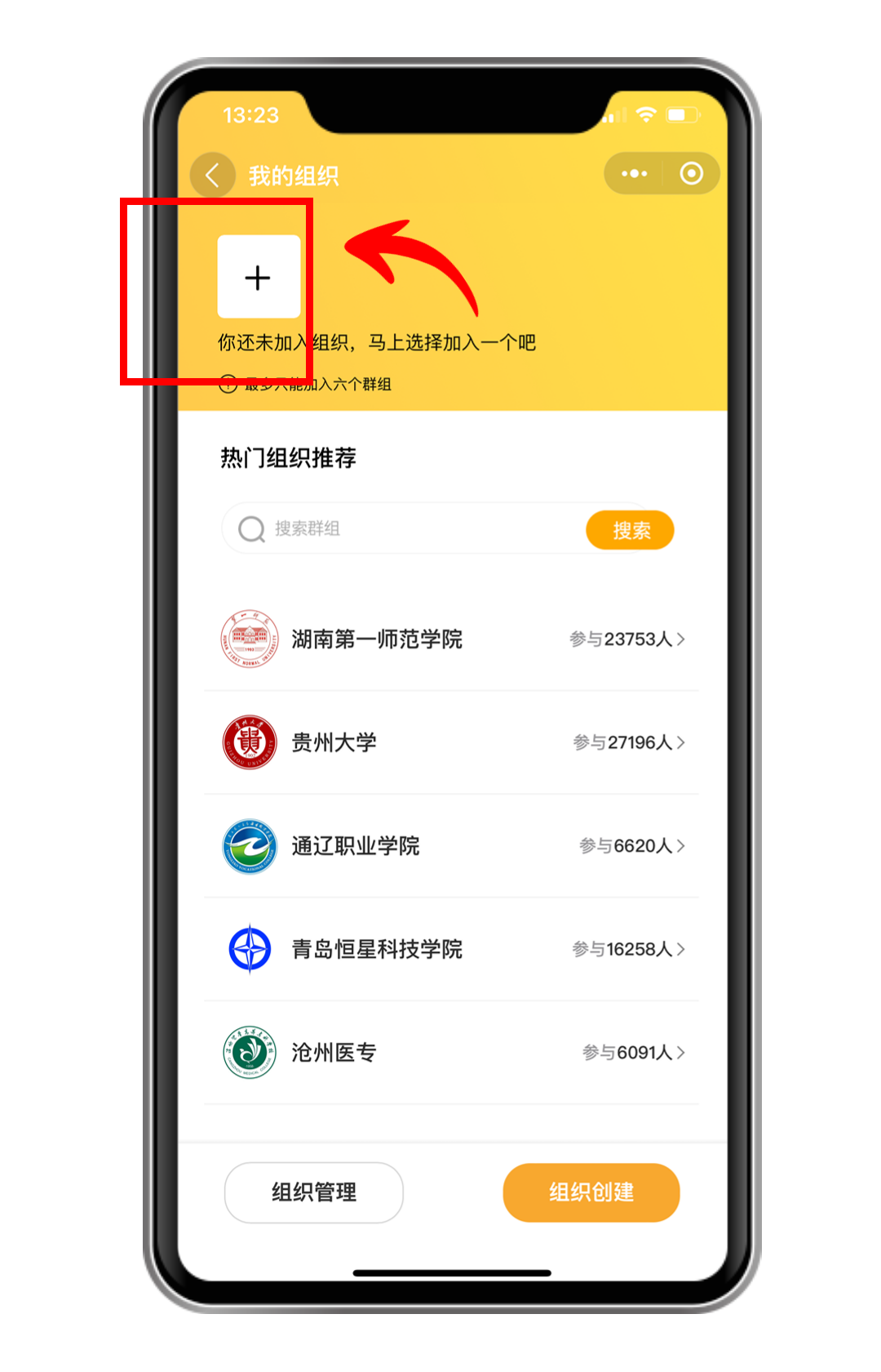 点击进入加入组织后,在组织名称中填写“直属团组织名称+姓名”