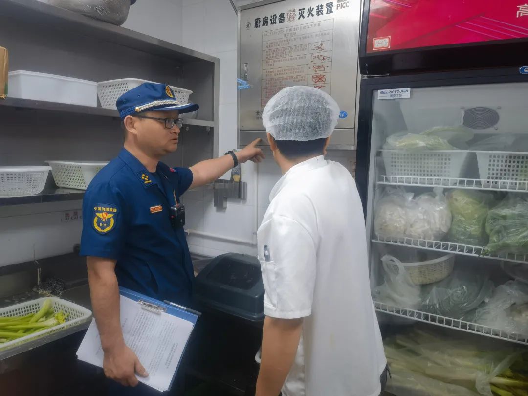 检查中,检查组围绕大型商业综合体、餐饮“一条街”等餐饮集中场所开展检查,重点对单位消防安全主体责任落实、消防设施设备运转、灶台自动灭火装置设置、油烟道清洗、灶台灭火三步法张贴培训、企安安自查情况、应急处置力量建设、“一警六员”实操实训等方面进行了检查。