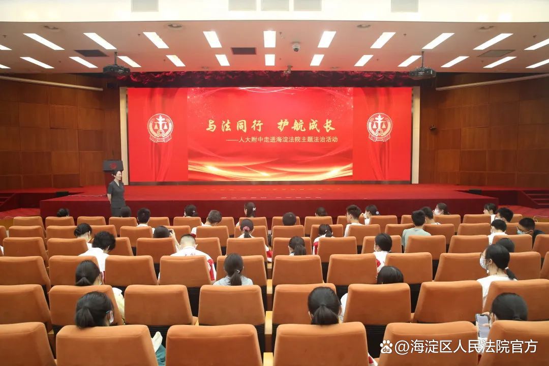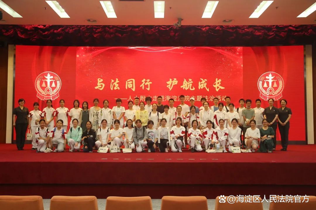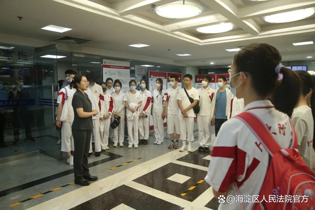 6月8日,人民大学附属中学的45名高中学生走进海淀法院,以“与法同行 护航成长”为题,“沉浸式”体验了法庭的魅力。
