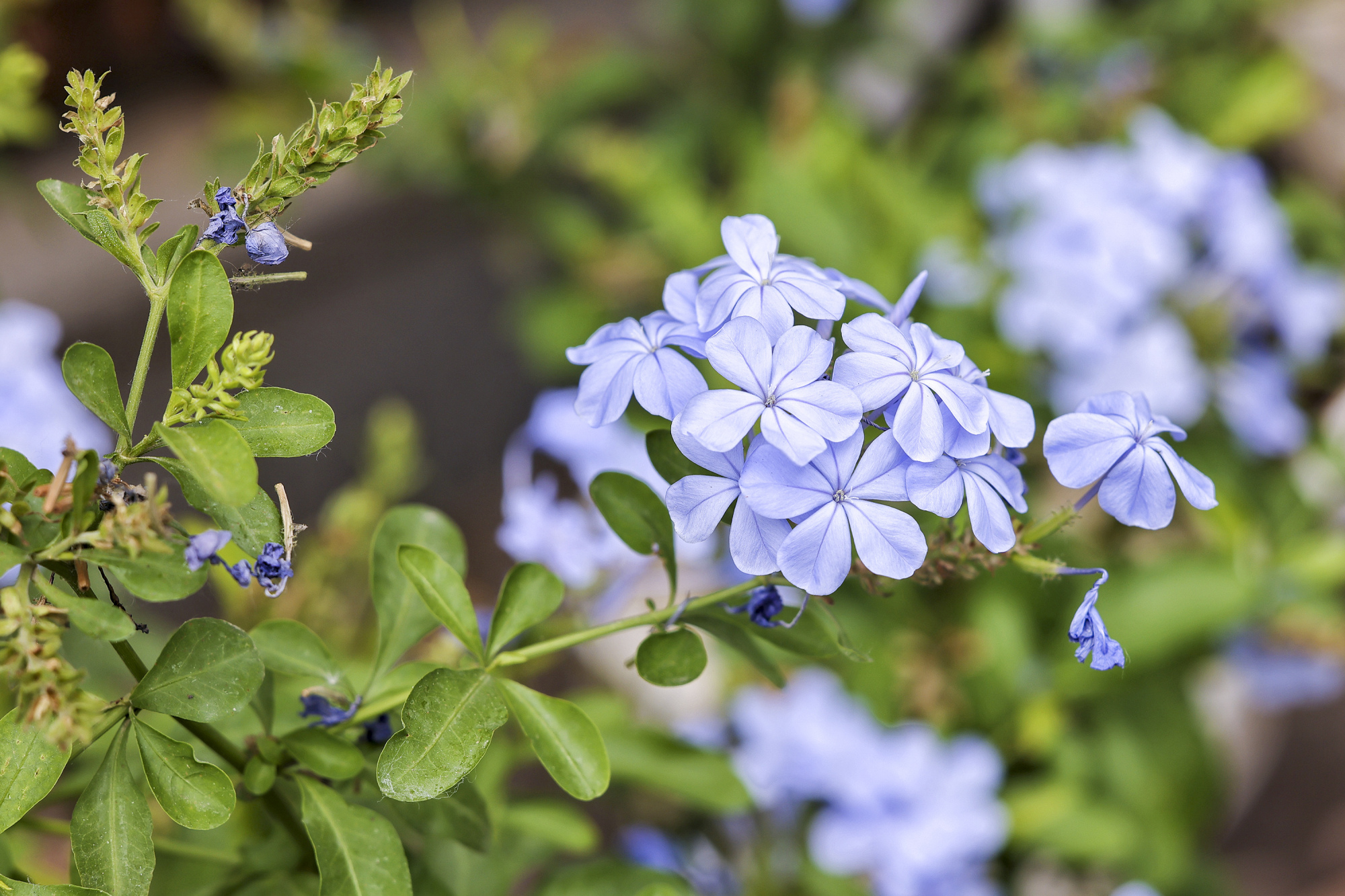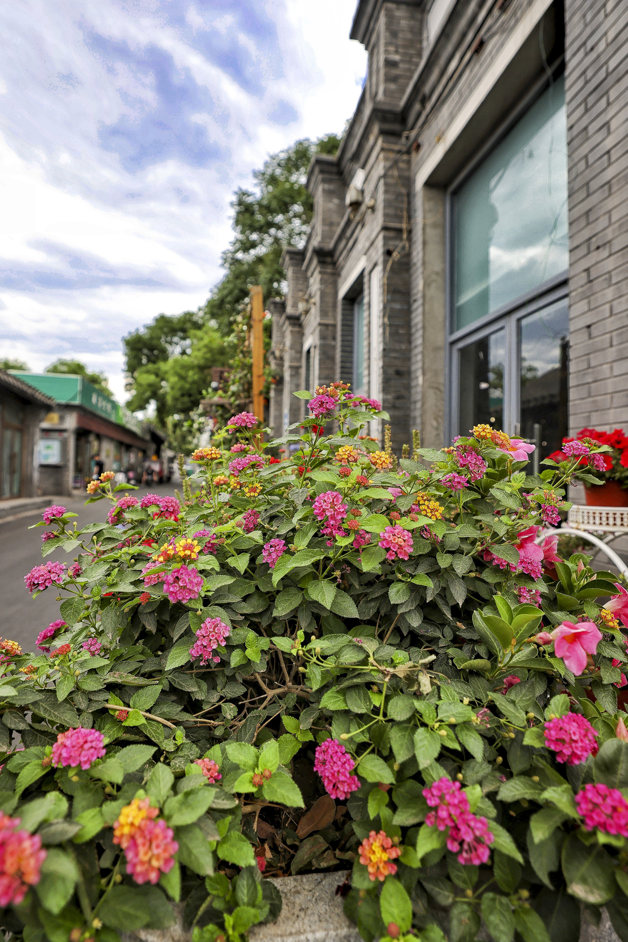 缤纷六月,胡同花事又上新风景。漫步东四胡同,满目芳菲。凌霄、蓝雪花、五色梅、矮牵牛、天竺葵、叶子花等各色夏花竞相绽放,为老胡同增添了绚丽色彩和浪漫诗意。