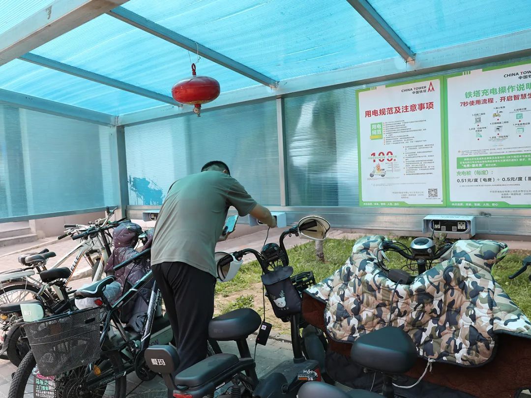 该社区电动自行车充电棚内车辆摆放整齐有序,统一配置的充电插座均匀分布,充电棚内还配备了悬挂式干粉灭火器,降低安全隐患。居民扫码后按照操作提示即可为电动自行车充电,到达设定时间或充满电后可自动断电。便捷的操作、充足的设备数量、完善的配套设施,顺义区电动自行车充电设施建设已经由“有没有”向“够不够”、再向“好不好”转变。