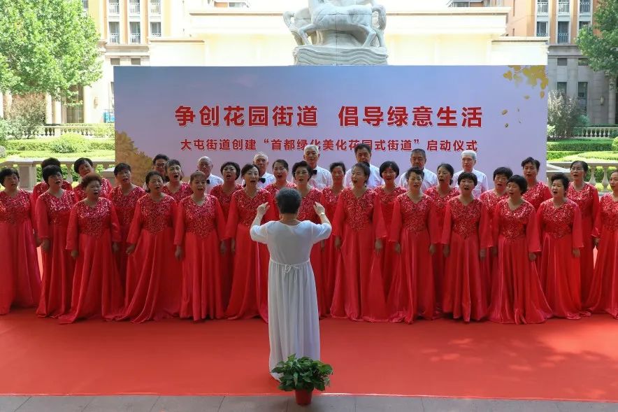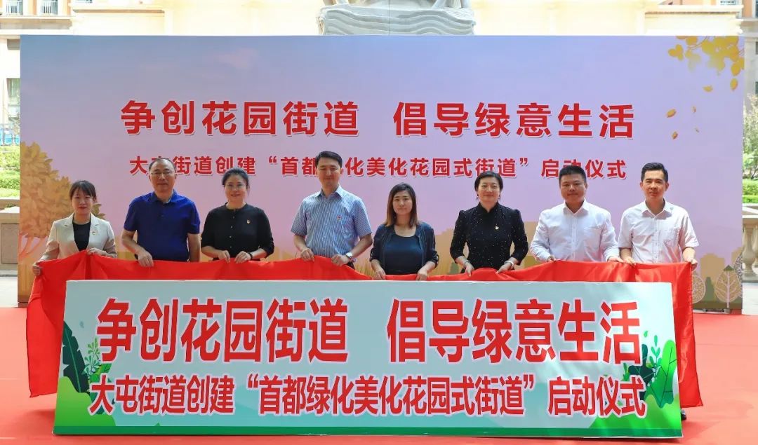 最后,与会领导为大屯街道创建“首都绿化美化花园式街道”揭幕。