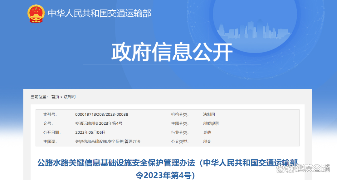今年6月1日,《公路水路关键信息基础设施安全保护管理办法》(简称《管理办法》)正式施行。