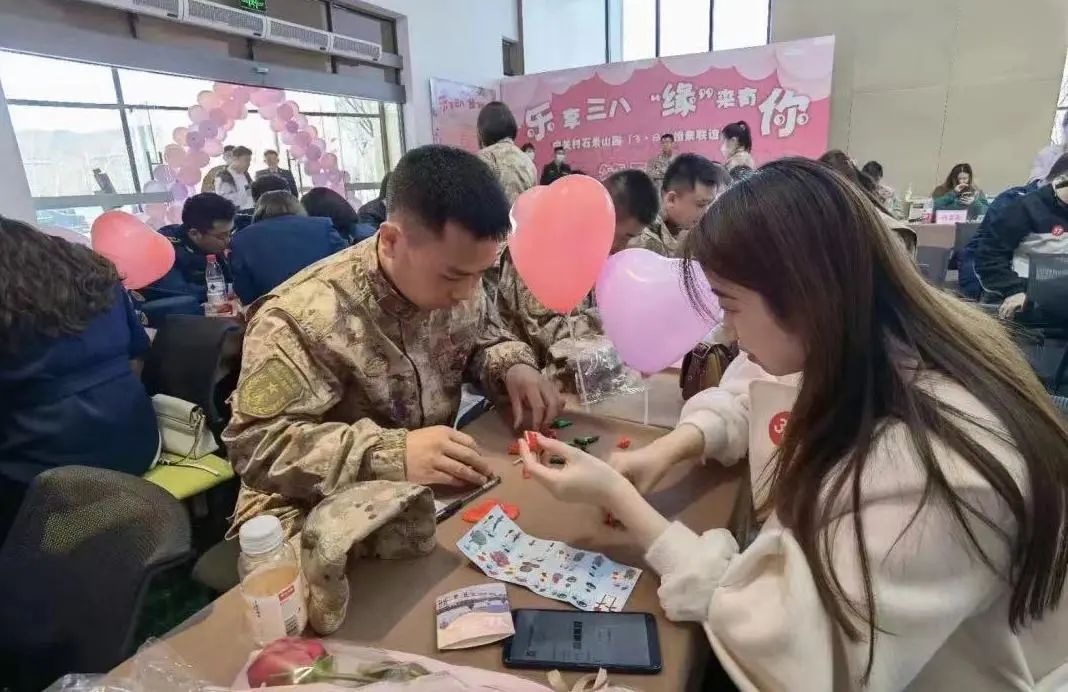 粉紫相间的气球彩虹门、鲜红的玫瑰花……中关村科技园区石景山园党群服务中心里洋溢着温馨和浪漫的气氛。这是石景山园党工委举办的“乐 享‘三八’ · ‘缘’来有你”联谊会,园区数十家企业、驻石景山区部队等单位近百名单身青年男女参加了联谊会。活动内容丰富多彩,“刚好遇见你”“默契大作战”等6个精心设计的互动环节,让与会者展示了个人风采,又拉近了彼此之间的距离。