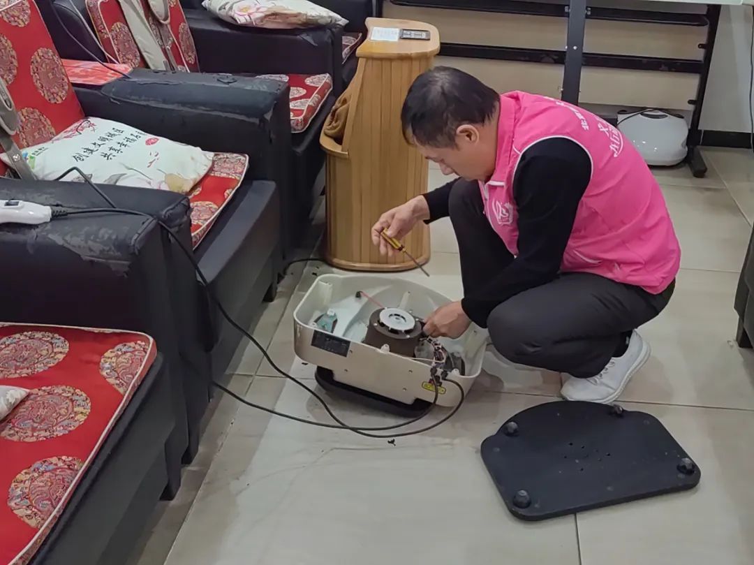 “您稍等,我这就帮您检查。”张宝书放下手中的活,接过按摩仪,拿出工具开始修理。经检查,按摩仪是由于线路接触不良引发的故障,查找出问题源头后,张宝书用手头的工具当天就给修好了。