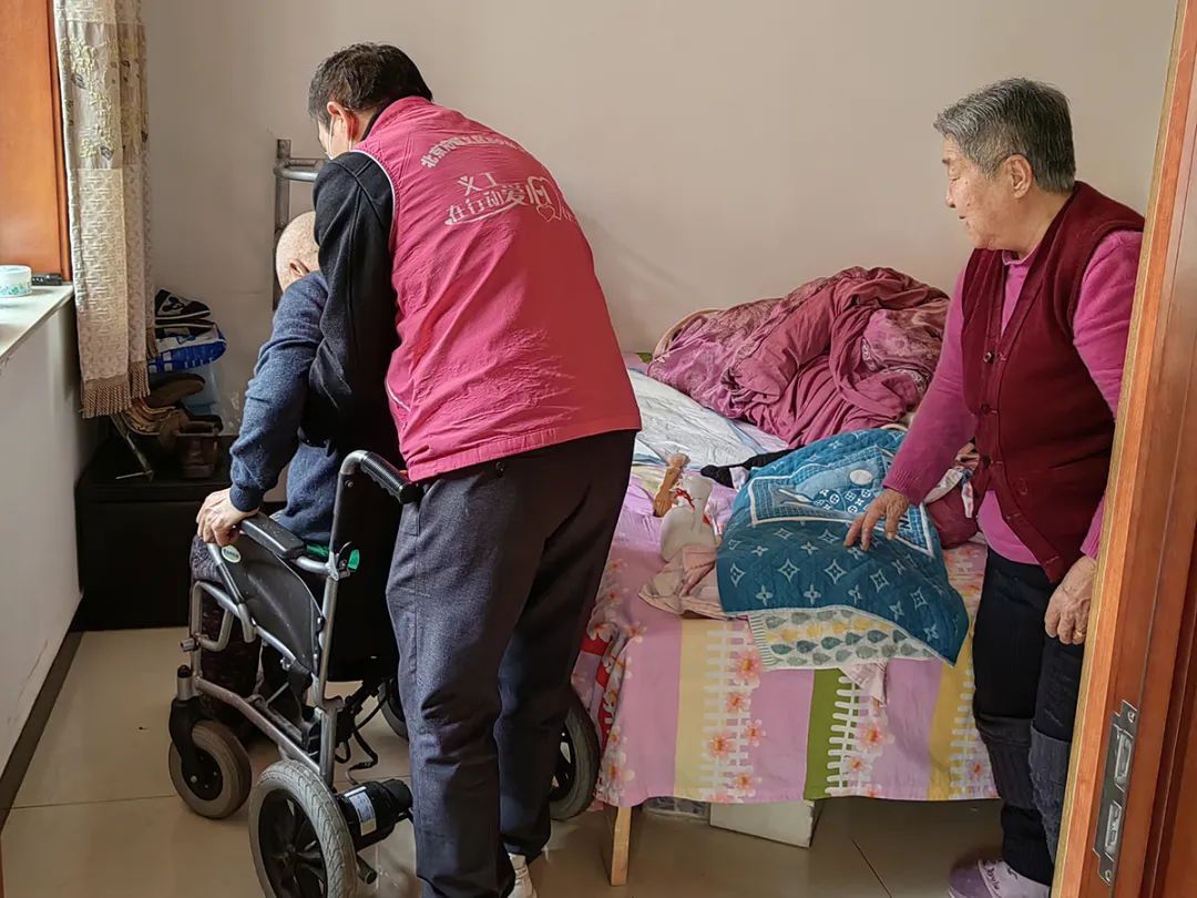 在驿站,张宝书也在不断提升自己。他积极参加驿站举办的急救培训,并取得了急救证。这让他在提供助老服务时,更沉稳、从容。社区里的刘先生是失能老人,常年卧床,一次拿床头的物品时不小心翻倒到床下,刘先生的老伴儿力量有限无法帮他起身,于是赶忙打电话向驿站求助。张宝书迅速赶到老人家里,他并没有着急将老人扶起,而是先询问、查看老人有无外伤、出血等情况,见老人意识清醒,且并无其他外伤后,他缓缓将老人扶起,抱到床上。“如果有哪里不舒服,一定要赶紧就医。”张宝书叮嘱家属道。
